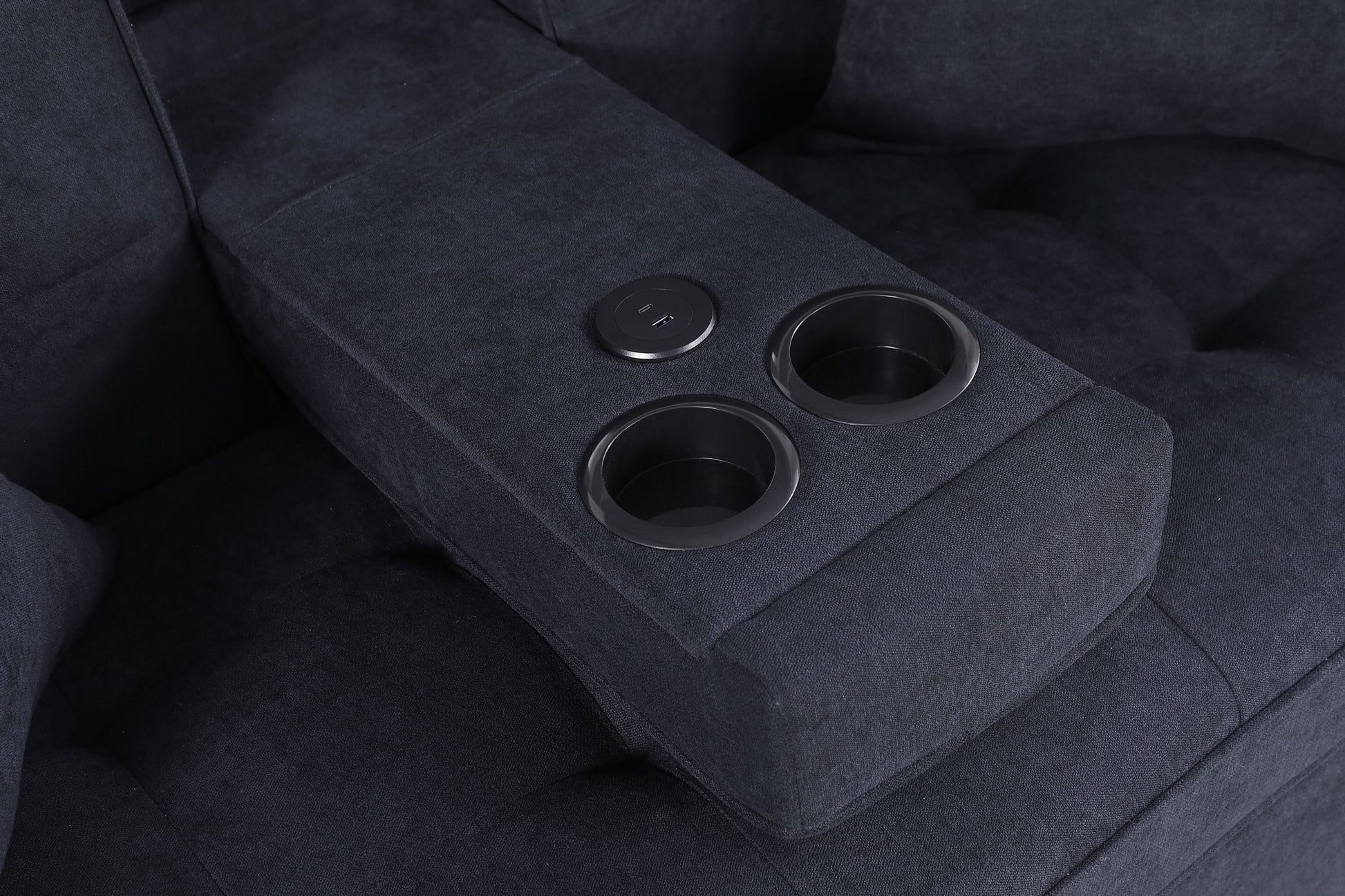 Cody II - Woven Fabric Convertible Sleeper Loveseat With Cup Holder, Charging Ports, Side Pocket, and Pocket Coil Seating - Dark Gray