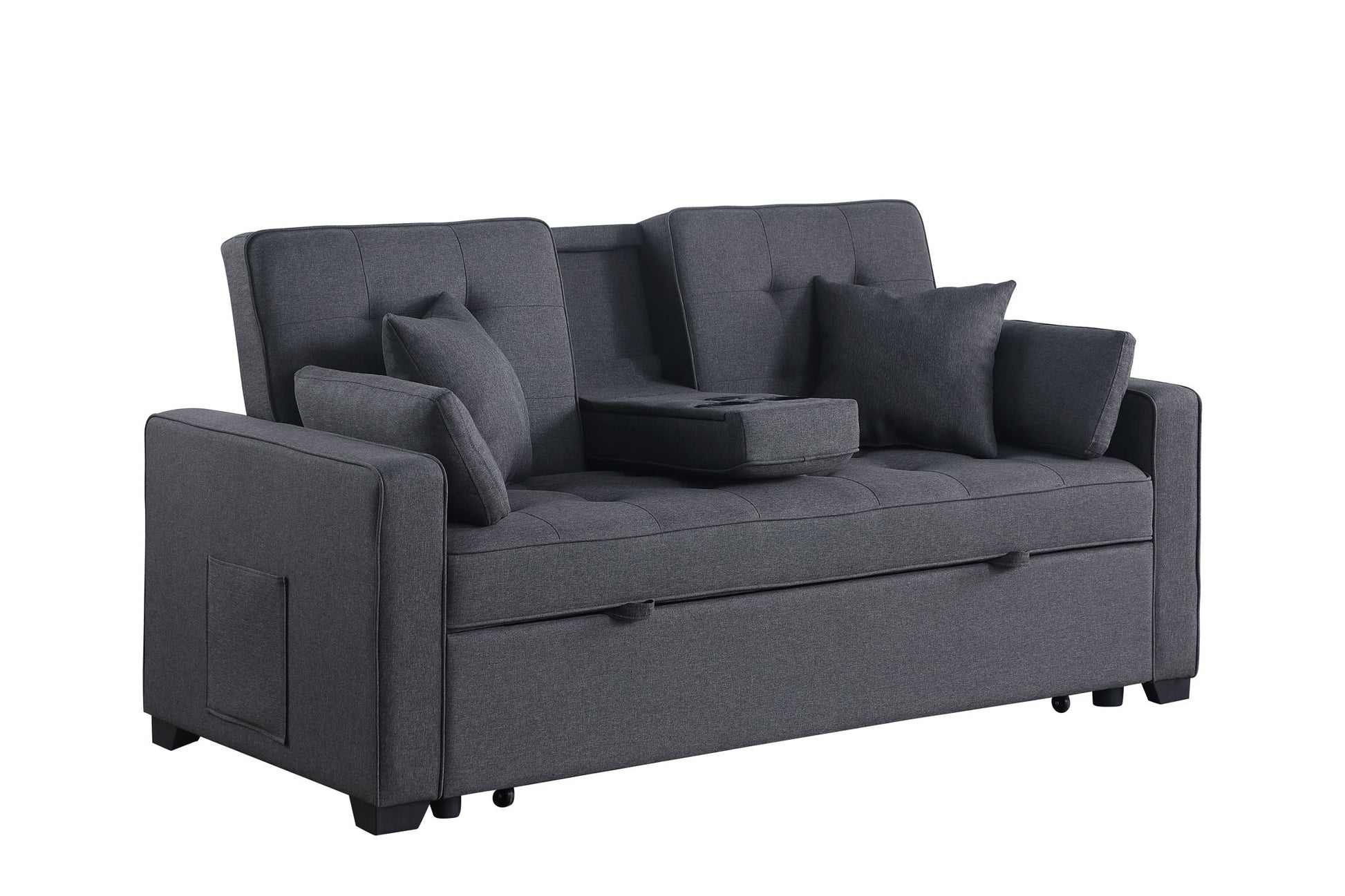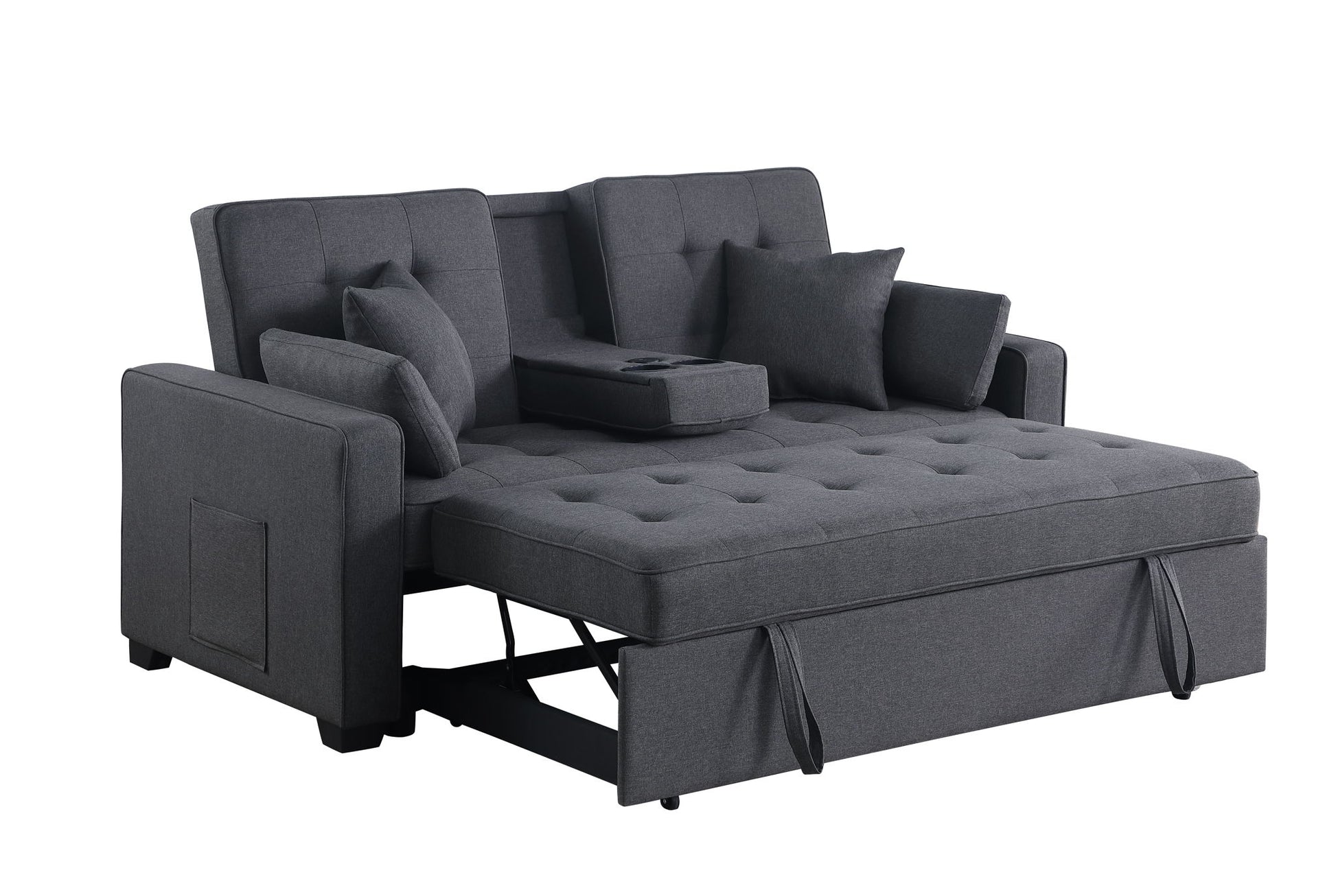 Cody II - Convertible Sleeper Loveseat With Cup Holder, Charging Ports and Pocket - Dark Gray