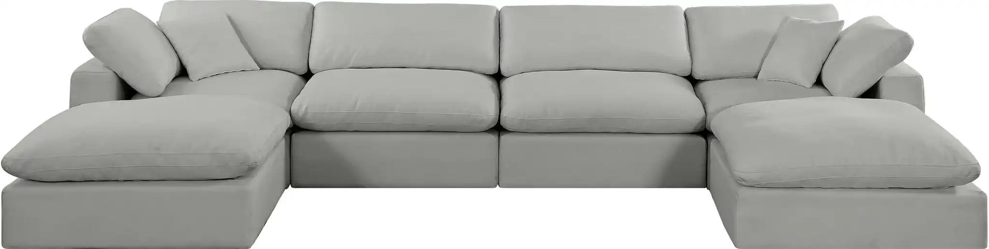 Comfy - 6 Piece Linen Modular Double Chaise Sectional - Light Gray
