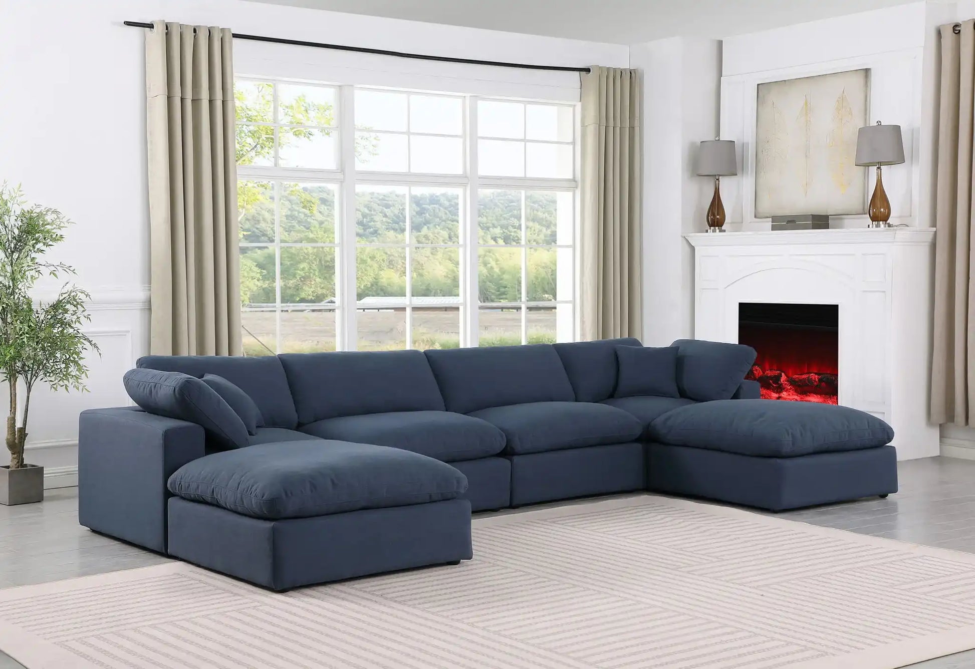 Comfy - 6 Piece Linen Modular Double Chaise Sectional