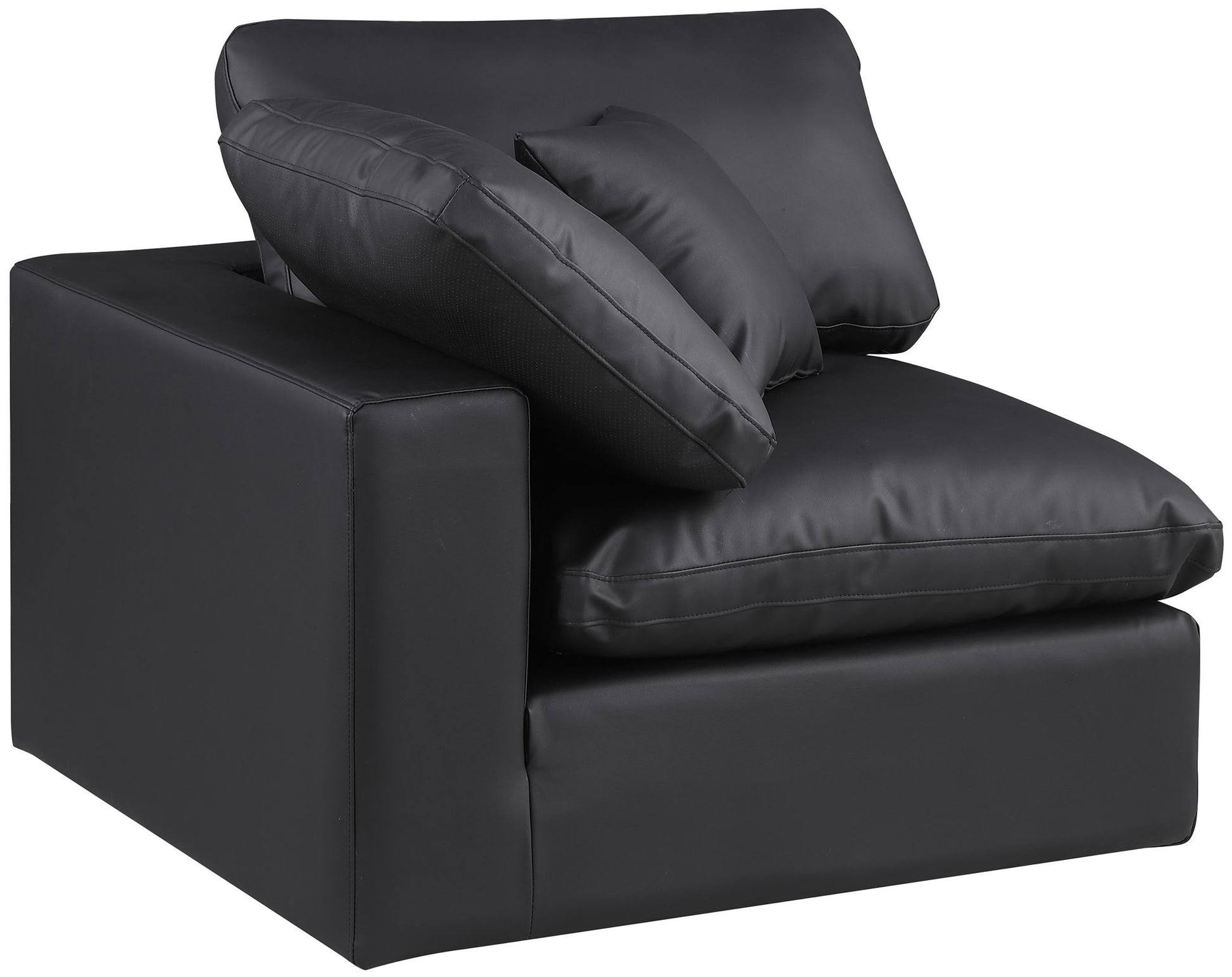 Give your space a whole new look with this Comfy vegan leather corner chair. This handsome chair fits nicely with other items in the Comfy collection and is a versatile seating option designed for adaptability, comfort and style. Wrapped in rich durable vegan leathered upholstery, this chair offers a plush embrace of overstuffed down feather cushions, carefully crafted to deliver the highest level of comfort. The perfect seat for creating an oasis for relaxation, this chair has thick foam surrounding its frame for added support and coziness.