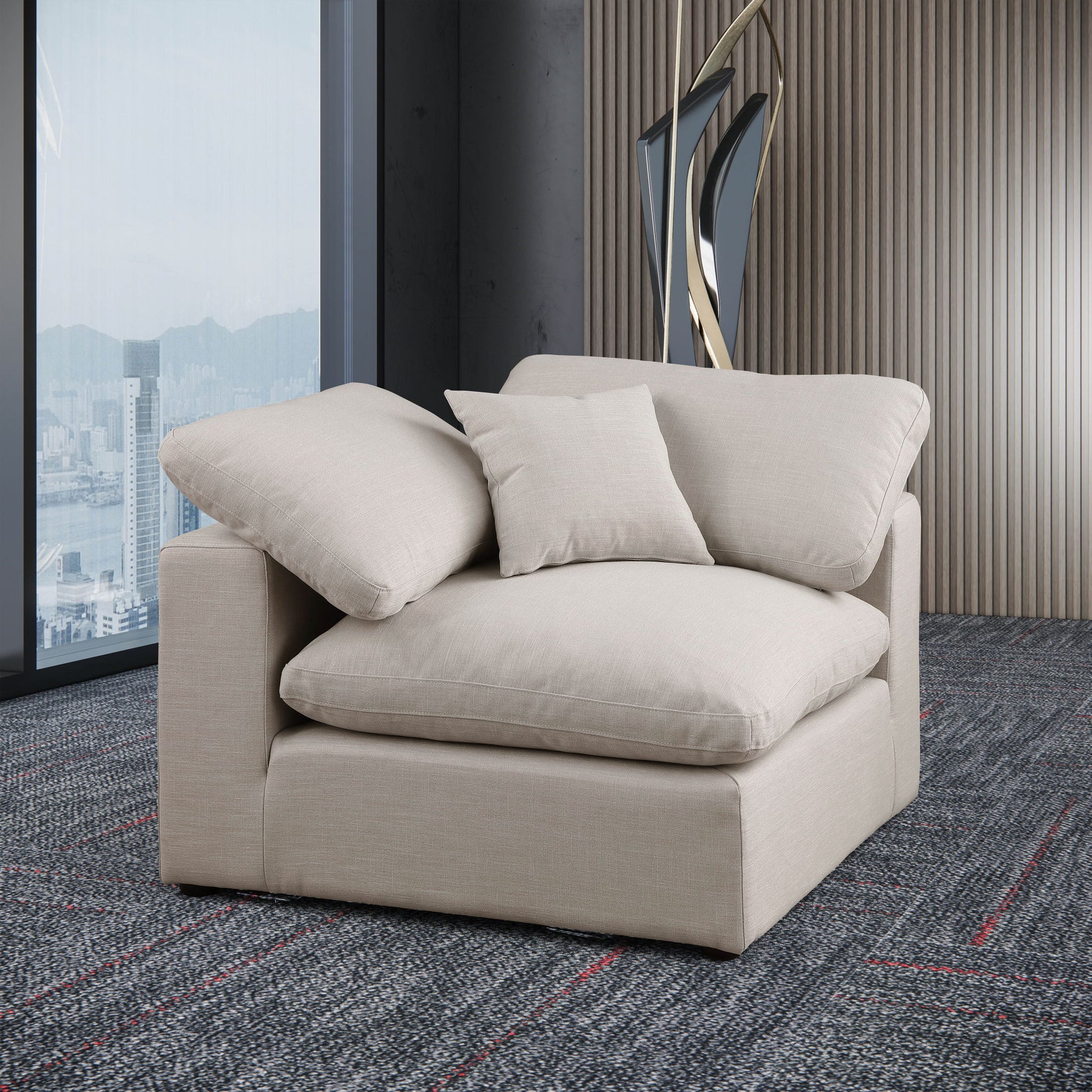Give your space a whole new look with this Comfy linen textured fabric corner chair. This handsome chair fits nicely with other items in the Comfy collection and is a versatile seating option designed for adaptability, comfort and style. Wrapped in rich durable linen textured fabric upholstery, this chair offers a plush embrace of overstuffed down feather cushions, carefully crafted to deliver the highest level of comfort. The perfect seat for creating an oasis for relaxation, this chair has thick foam surrounding its frame for added support and coziness.