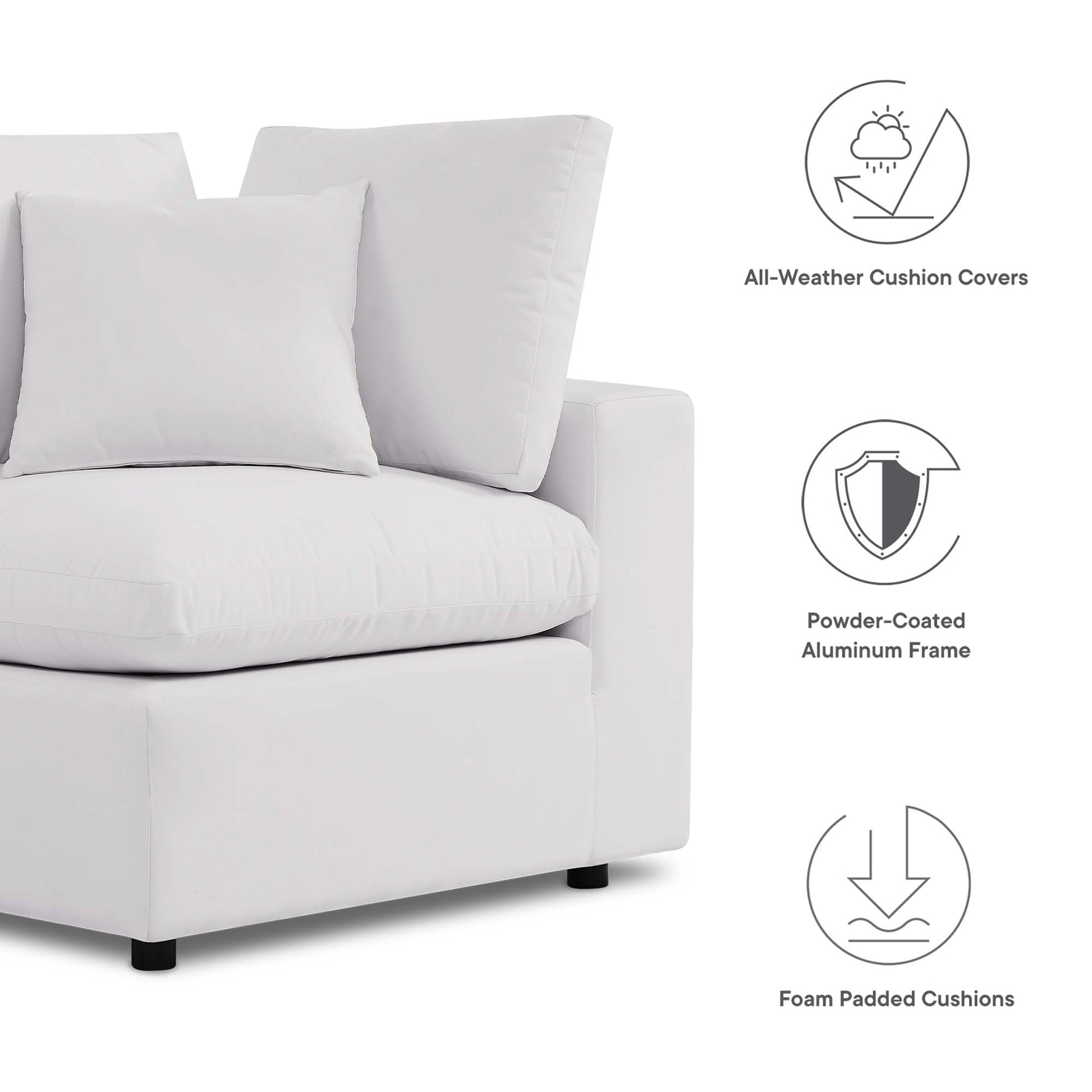 A haven for cozy relaxation right in your own backyard, Commix features plush comfort, a clean-lined design, and a spacious profile that makes an attractive statement on the porch, patio, or by the poolside. Made for sprawling out in the sun or curling up with a good book, this patio loveseat features generously padded cushions covered in water-resistant and UV-resistant covers making them ideal for your outdoor space. This outdoor two-seater sofa features an all-weather construction with a powder-coated aluminum frame and non-marking foot caps to protect flooring surfaces. Beckoning guests to sit and stay a while, the Commix Outdoor Patio Collection is perfect for al fresco entertaining or lounging amidst warm weather. Each Seat Weight Capacity: 300 lbs.