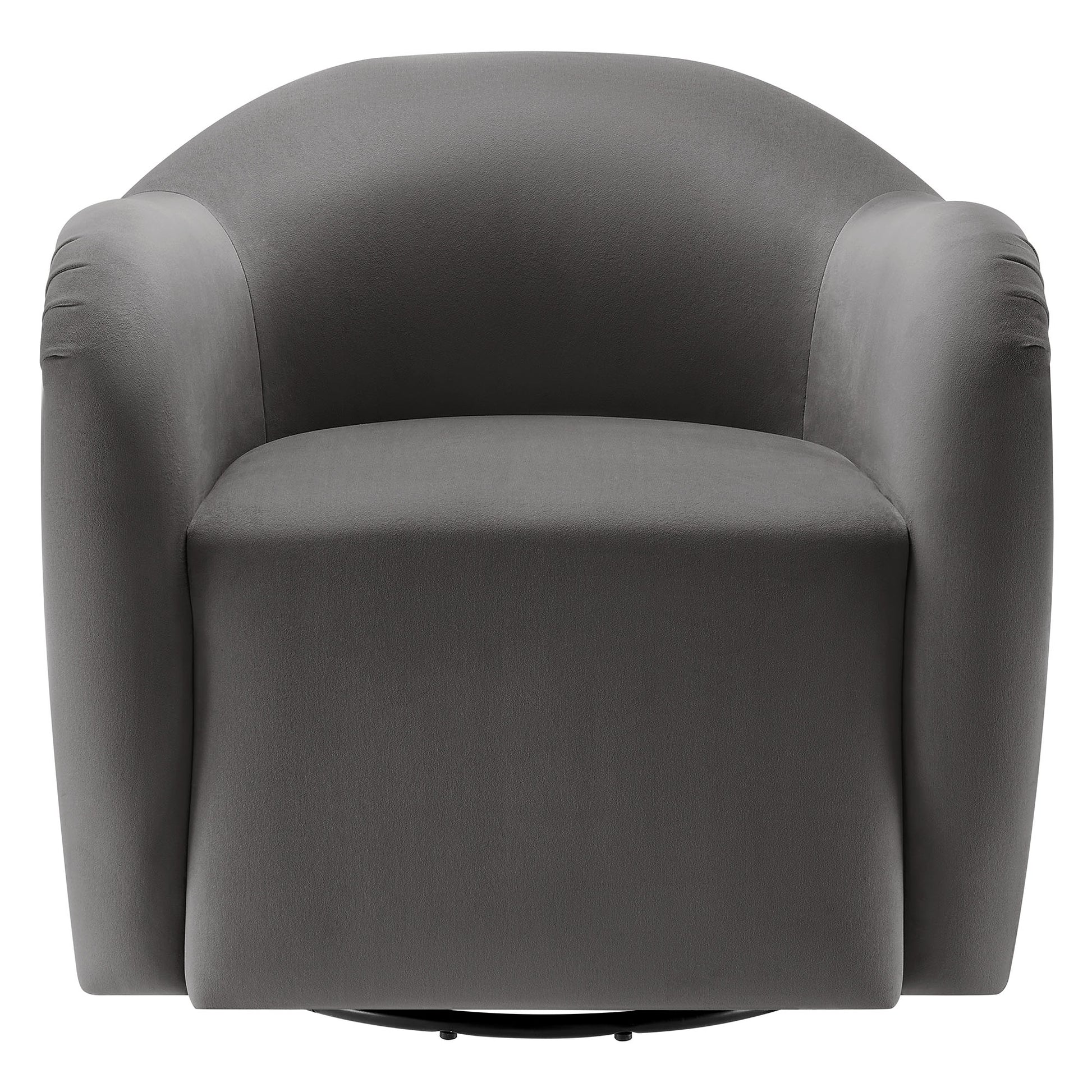 Let the Compose Swivel Accent Chair be your go-to for chic and cozy relaxation. This eye-catching round swivel chair is designed to be the centerpiece of any room, offering a perfect combination of modern aesthetics and cozy seating. Crafted with a mix of high-quality wood materials, the Compose barrel swivel chair is wrapped in stain-resistant performance velvet. Its smooth curves and plush padding create an inviting seating experience, perfect for unwinding after a long day. The Compose round sofa chair features a sturdy steel swivel base, allowing for a full 360-degree rotation. Whether you're chatting with friends, watching TV, or reading a book, this bucket chair offers effortless maneuverability and support in a moment�s notice. With its round silhouette, this club chair seamlessly fits into any decor, making it an ideal velvet accent chair for your living room, bedroom, or office. The meticulous stitching along the seams and edges creates subtle contours, adding a touch of refined craftsmanship to the overall comfortable chair design. Weight Capacity: 500 lbs.