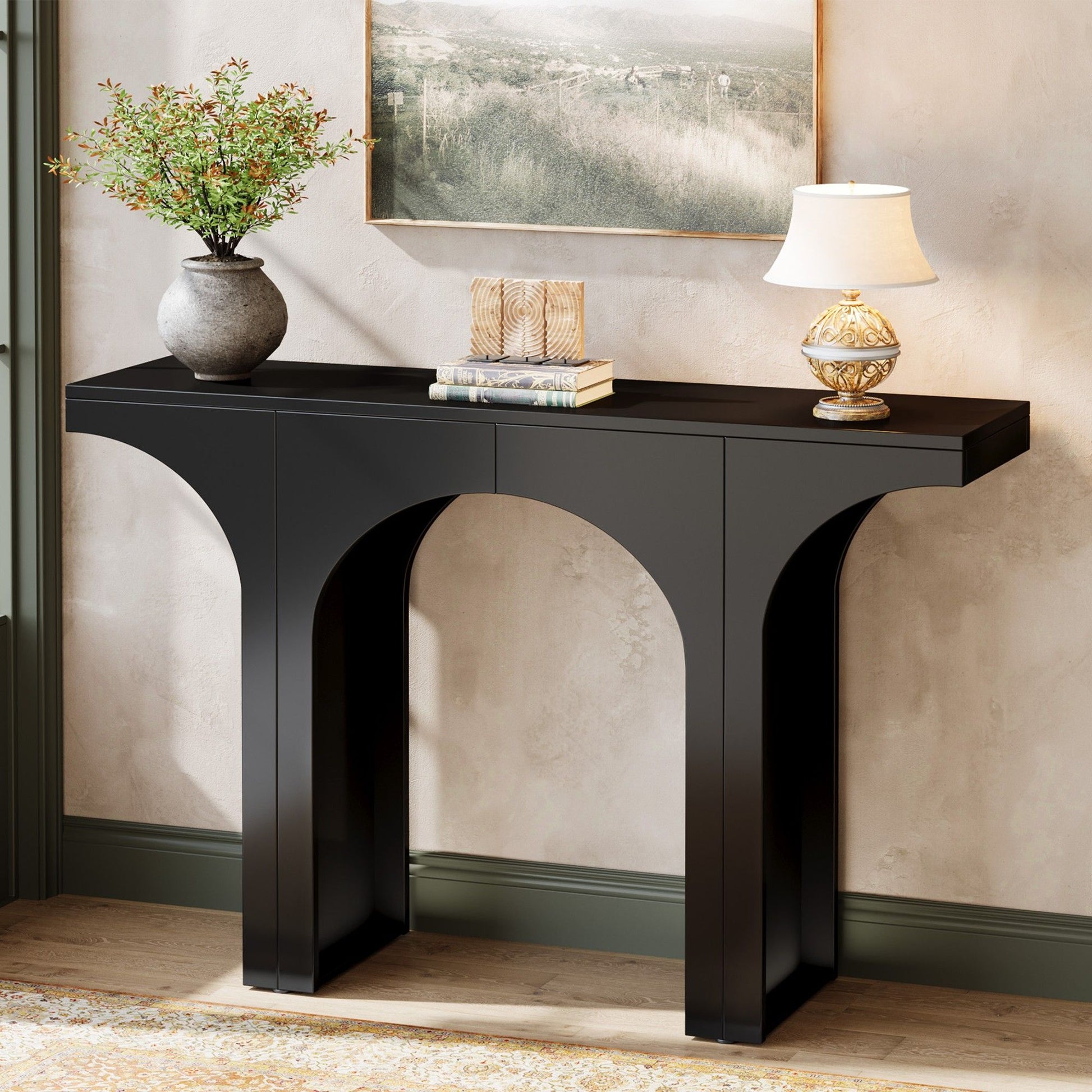 Console Table With Arched Base For Entryway - Black