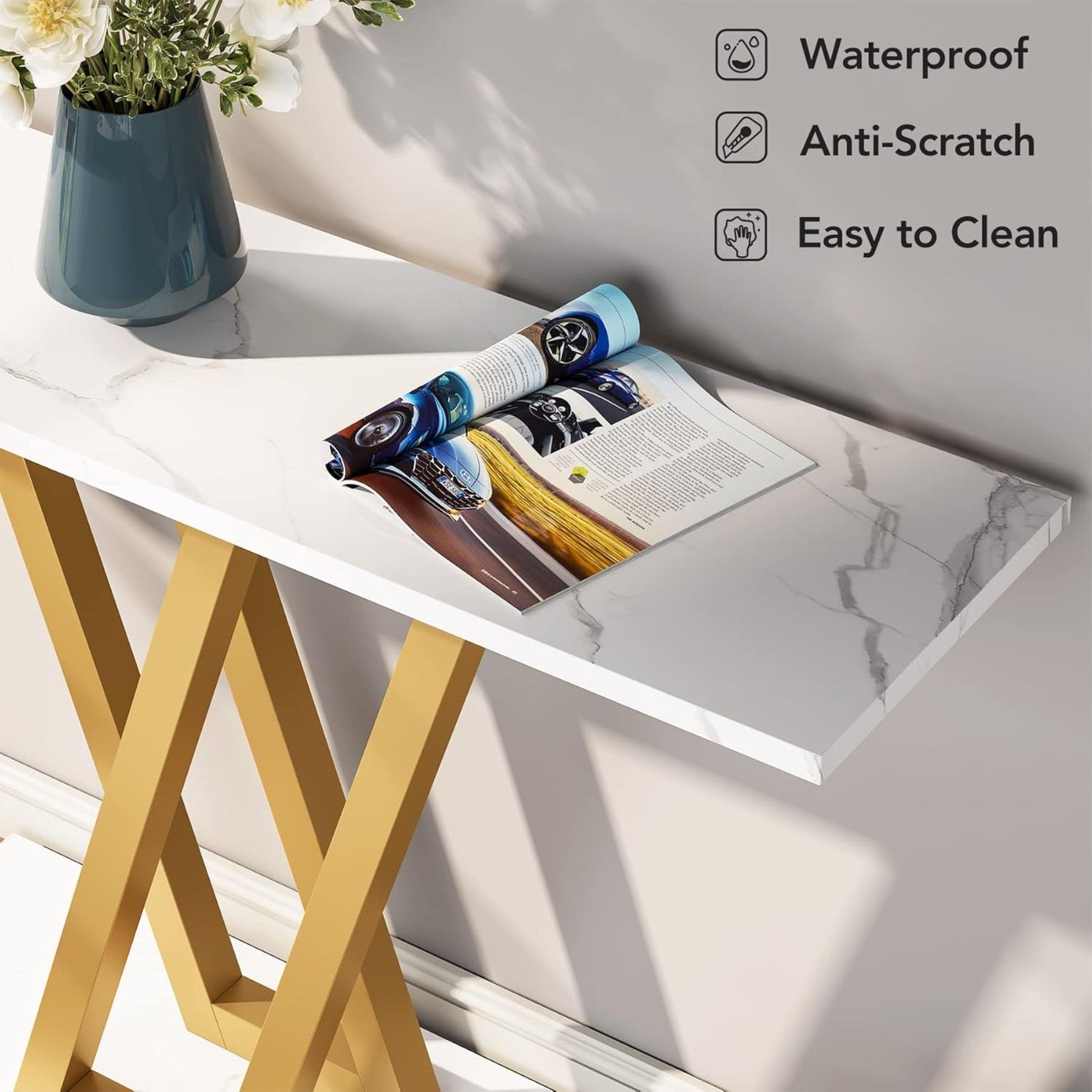 - Elegant Modern Glam Style: White faux marble top with gold metal frame creates a sophisticated look perfect for entryways, hallways, or living rooms.