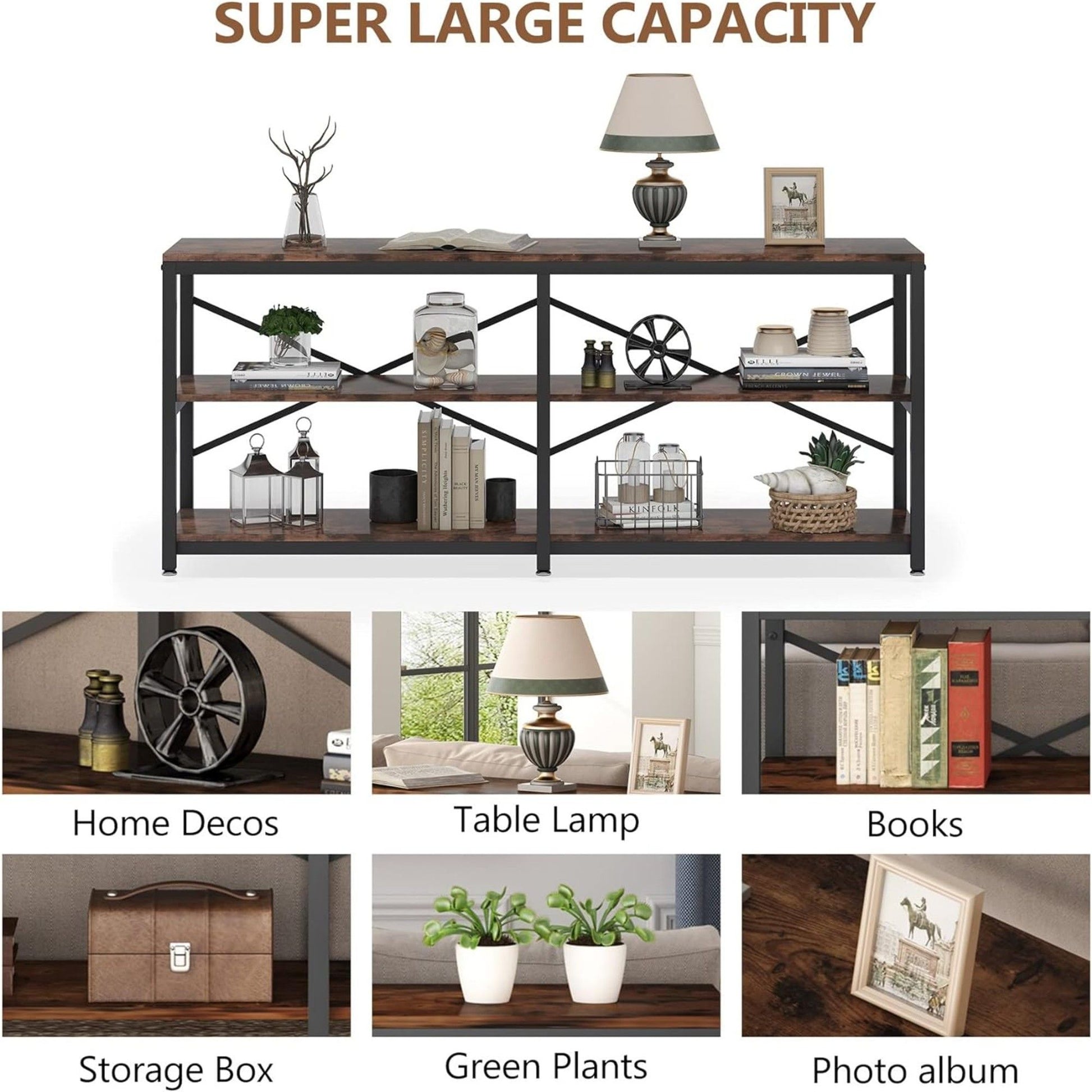 Extra Long Console Table With 3 Tier Shelves, X-Frame Design For Living Room - Rustic Brown