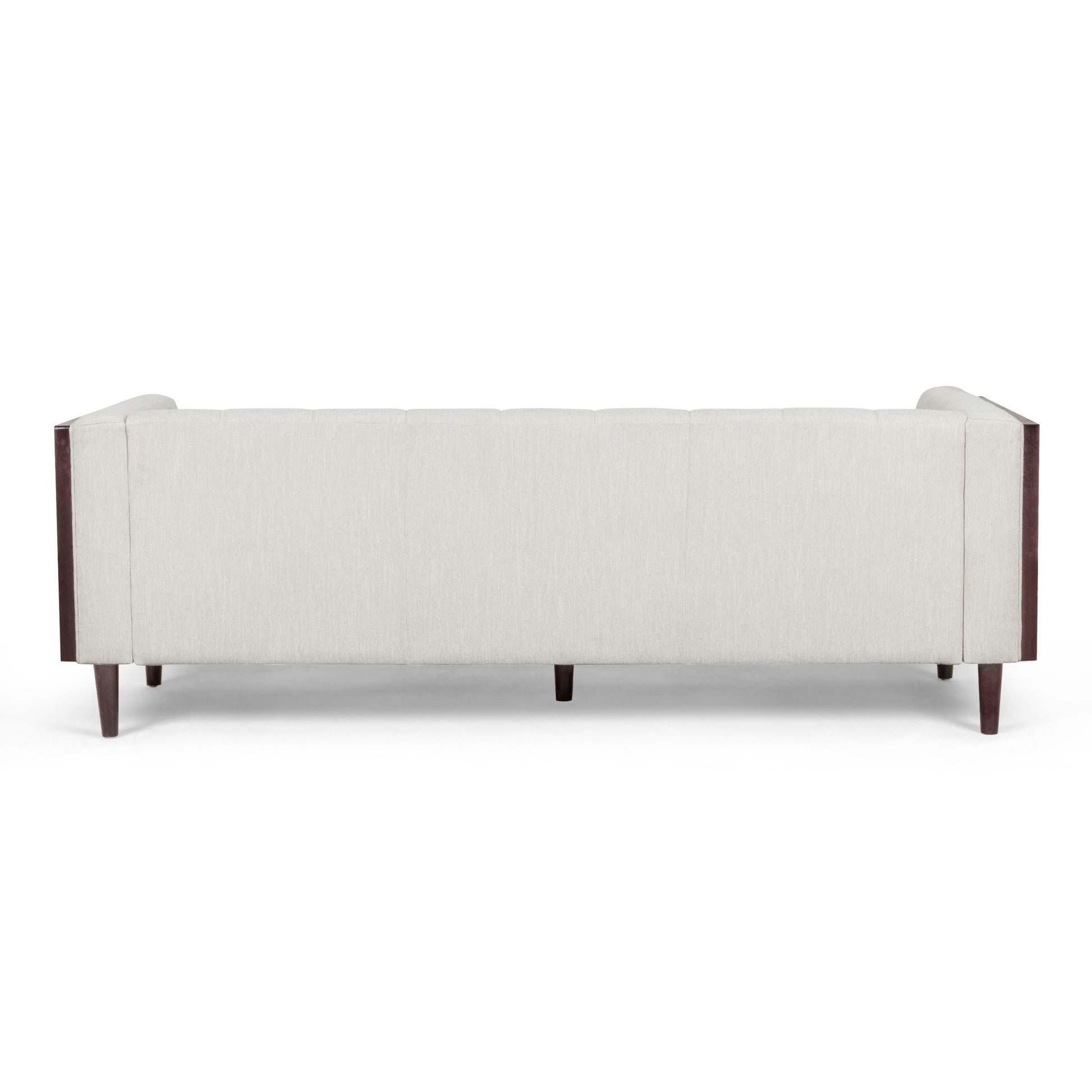 Contemporary 3 Seater Sofa With Button Tufted Waffle Stitching - Beige