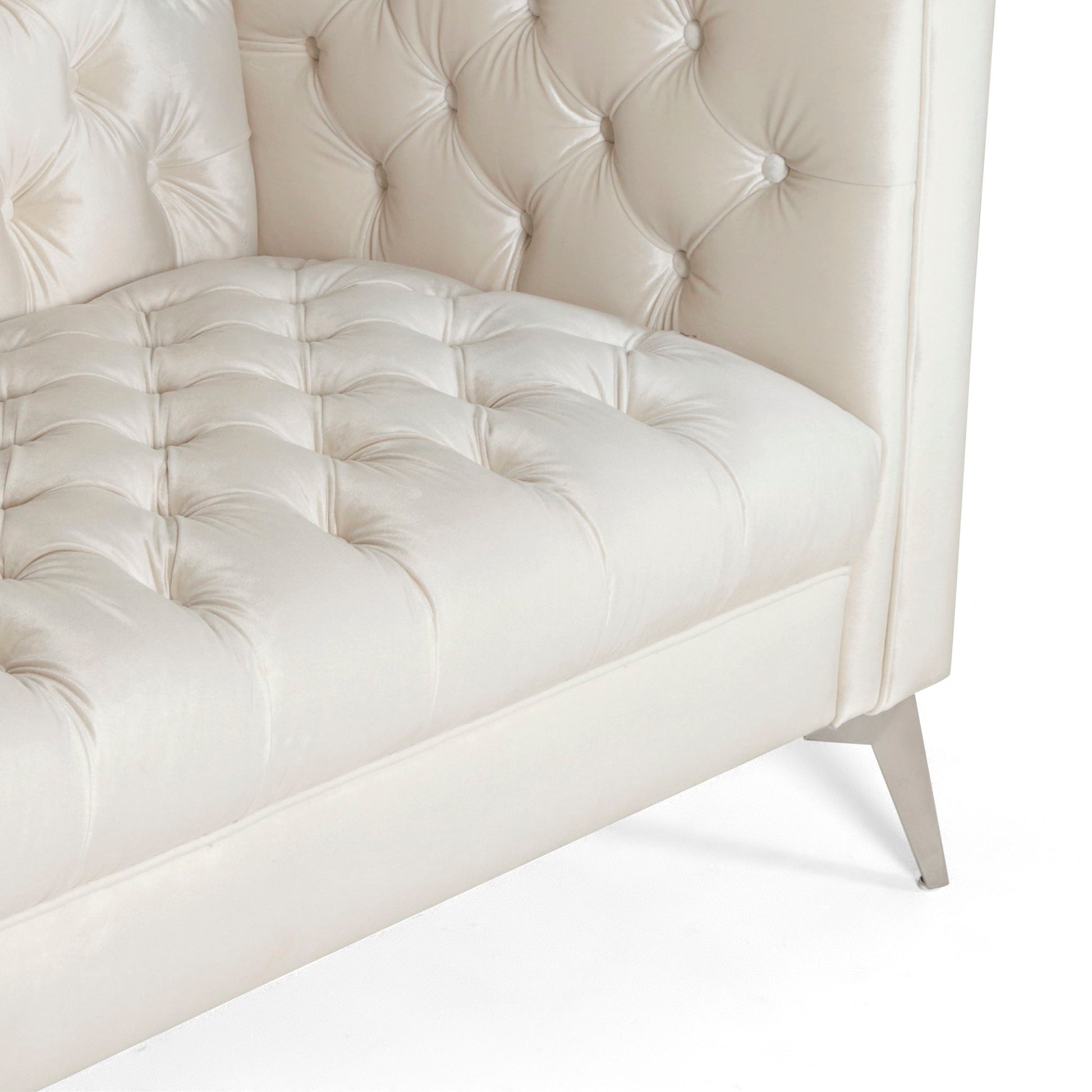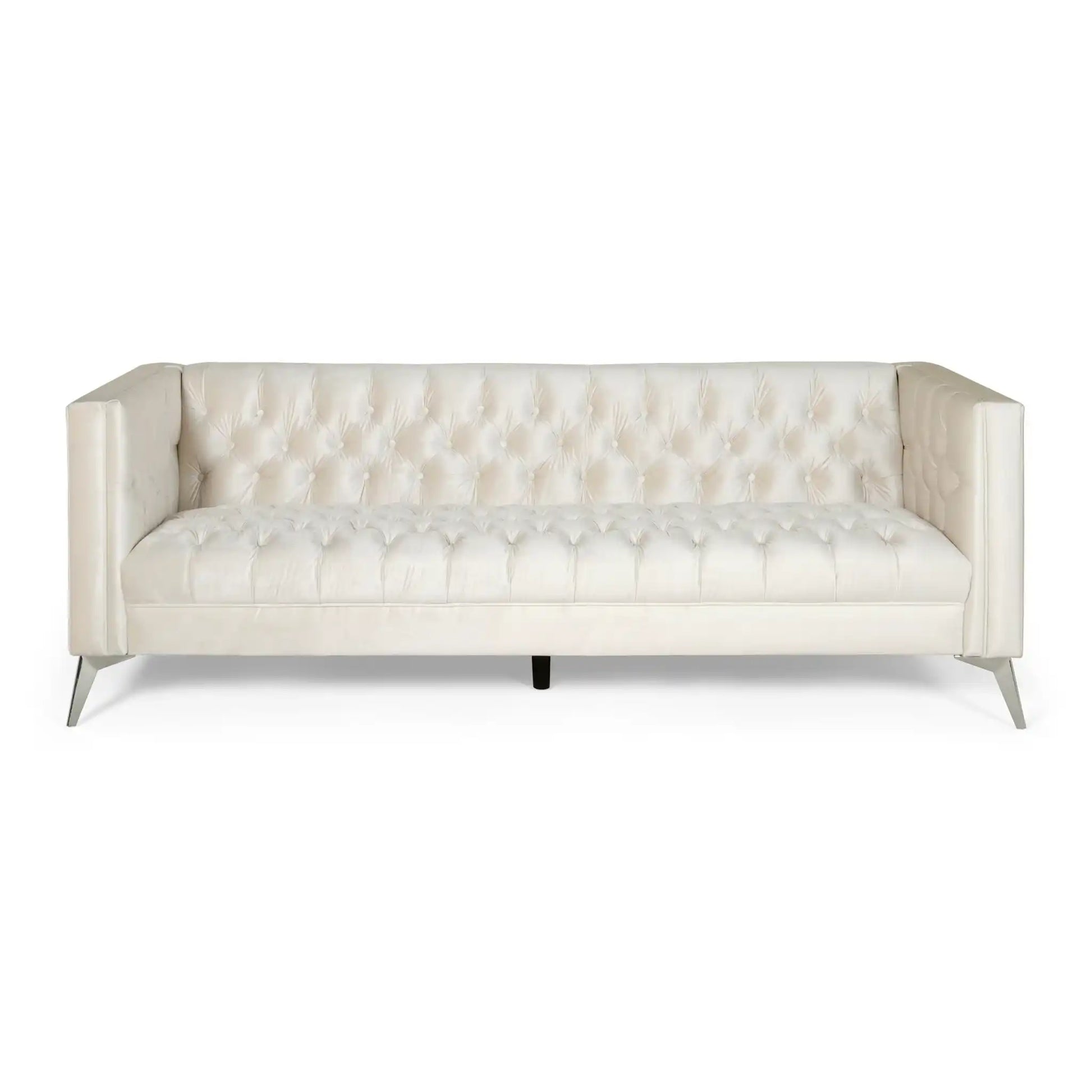 Contemporary 3 Seater Sofa & Button Tufted Design - Beige