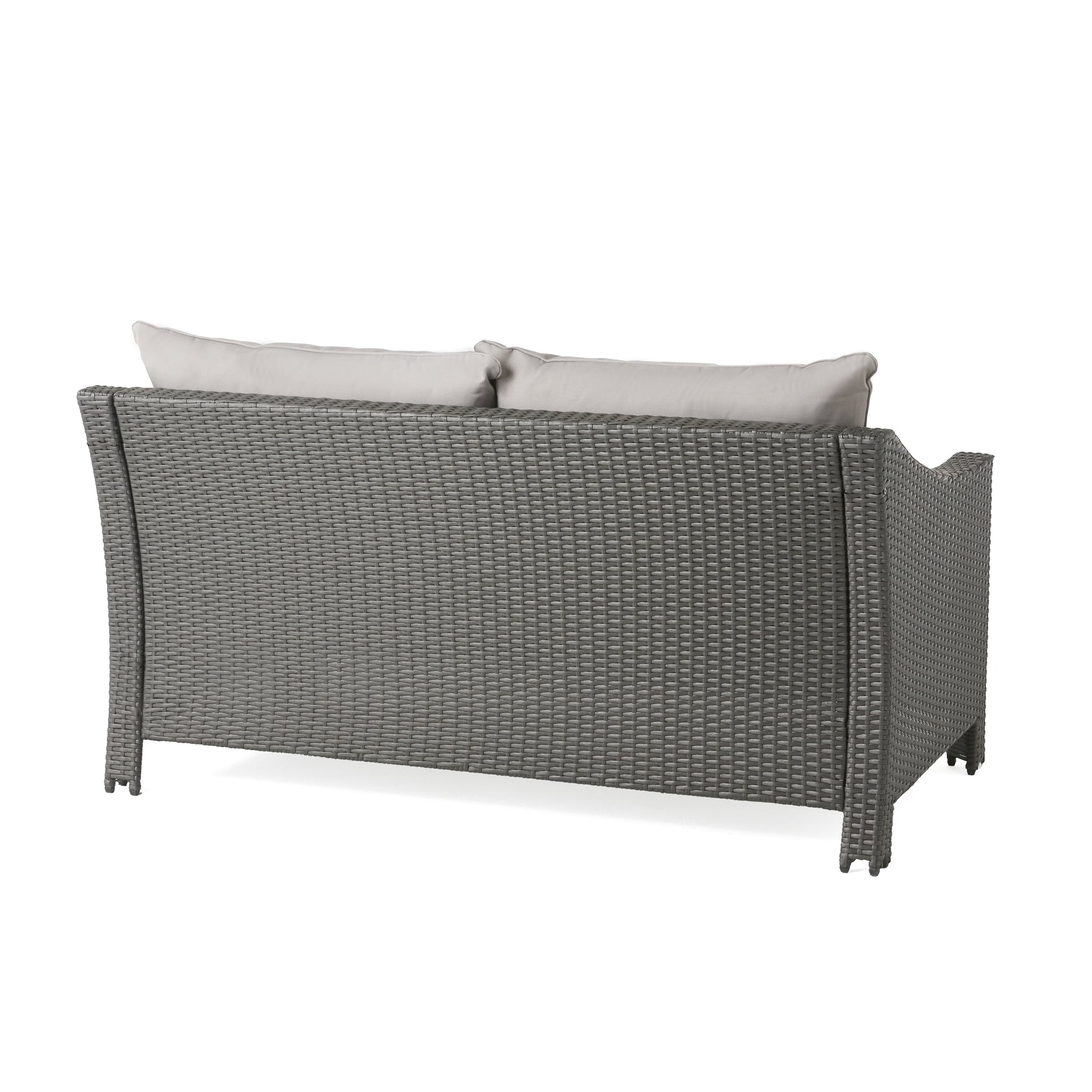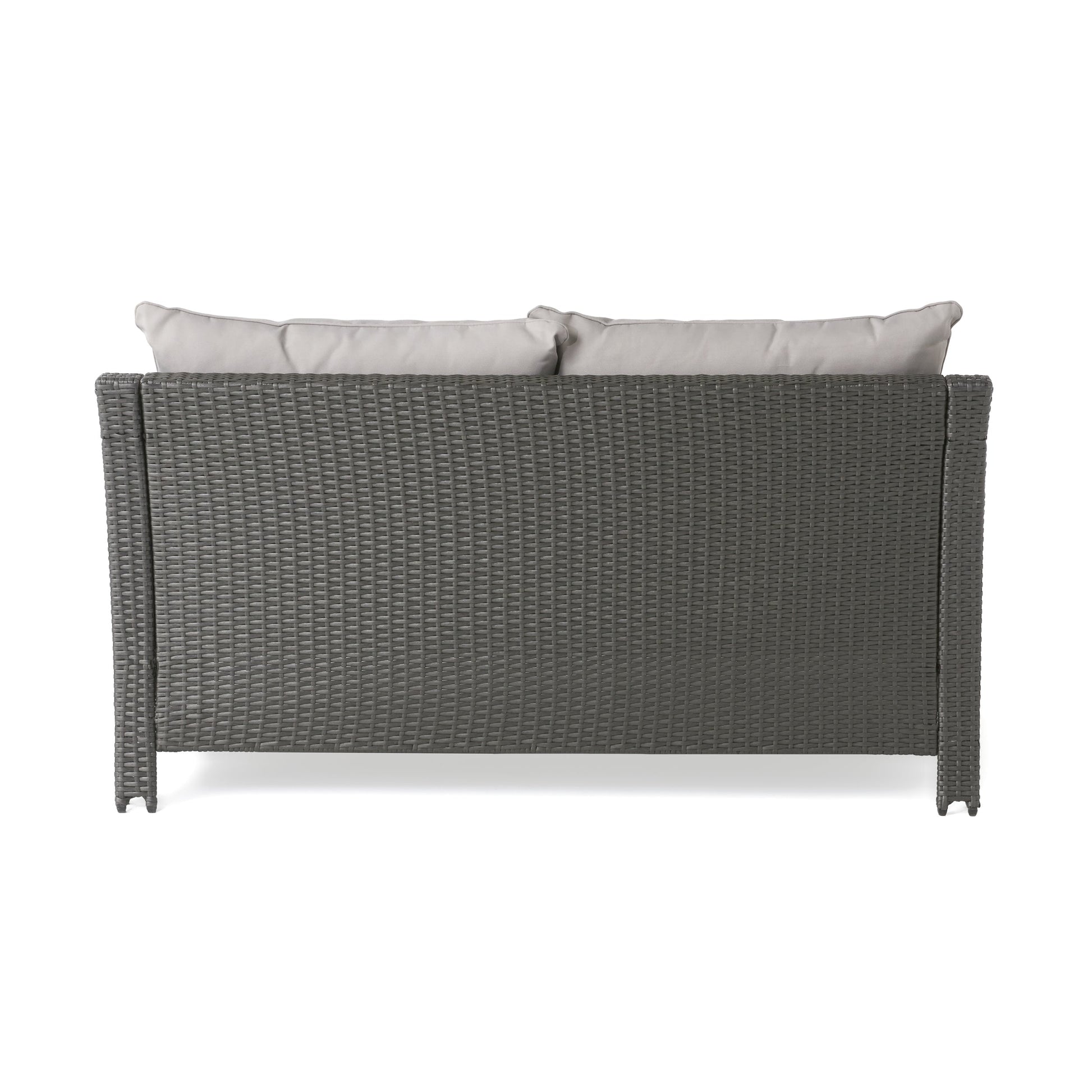 Contemporary ANTIBES Loveseat & Table Set Outdoor Grey PE Rattan Iron Waterproof Fabric