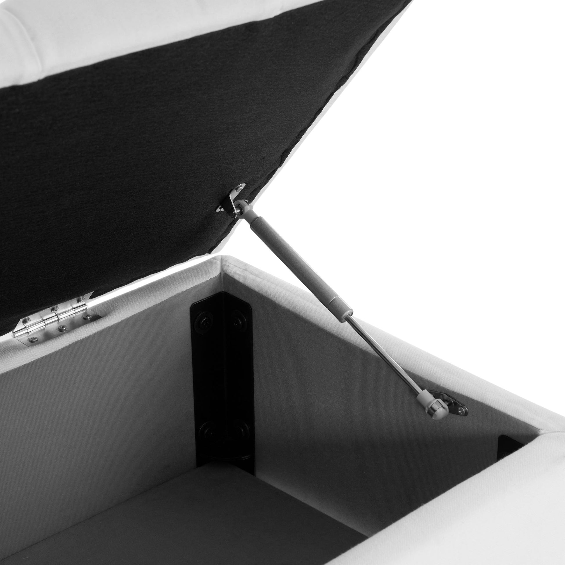 Contemporary Button Tufted Diamond Stitched Storage Ottoman - White