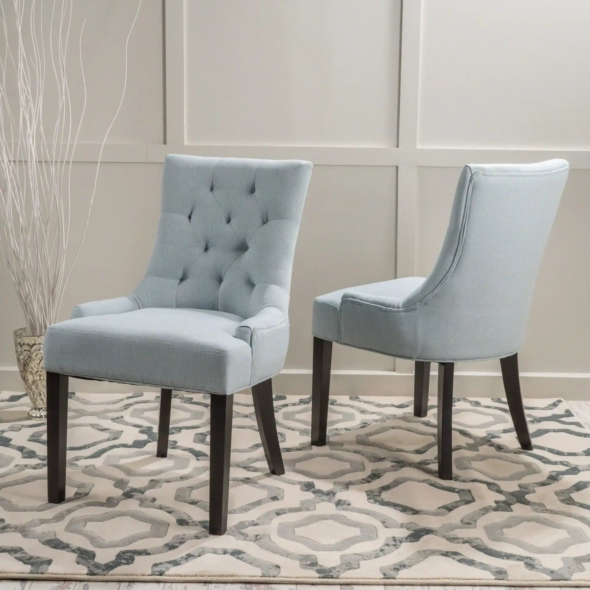Cheney - Contemporary Dining Chair Set With Tufted Design And Wood Legs - Light Blue