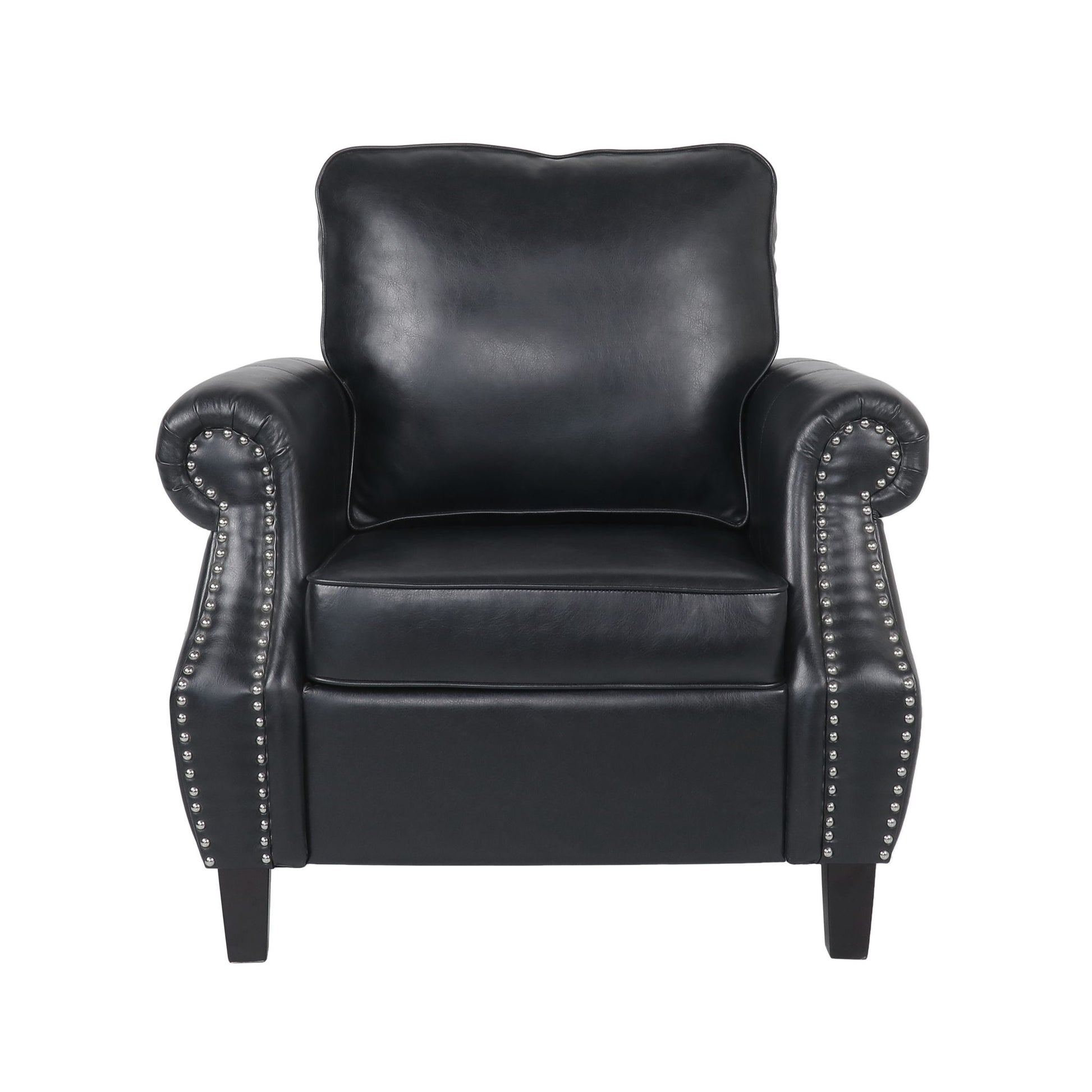 Contemporary Club Chair With Nailhead Trim And Rolled Armrests - Black