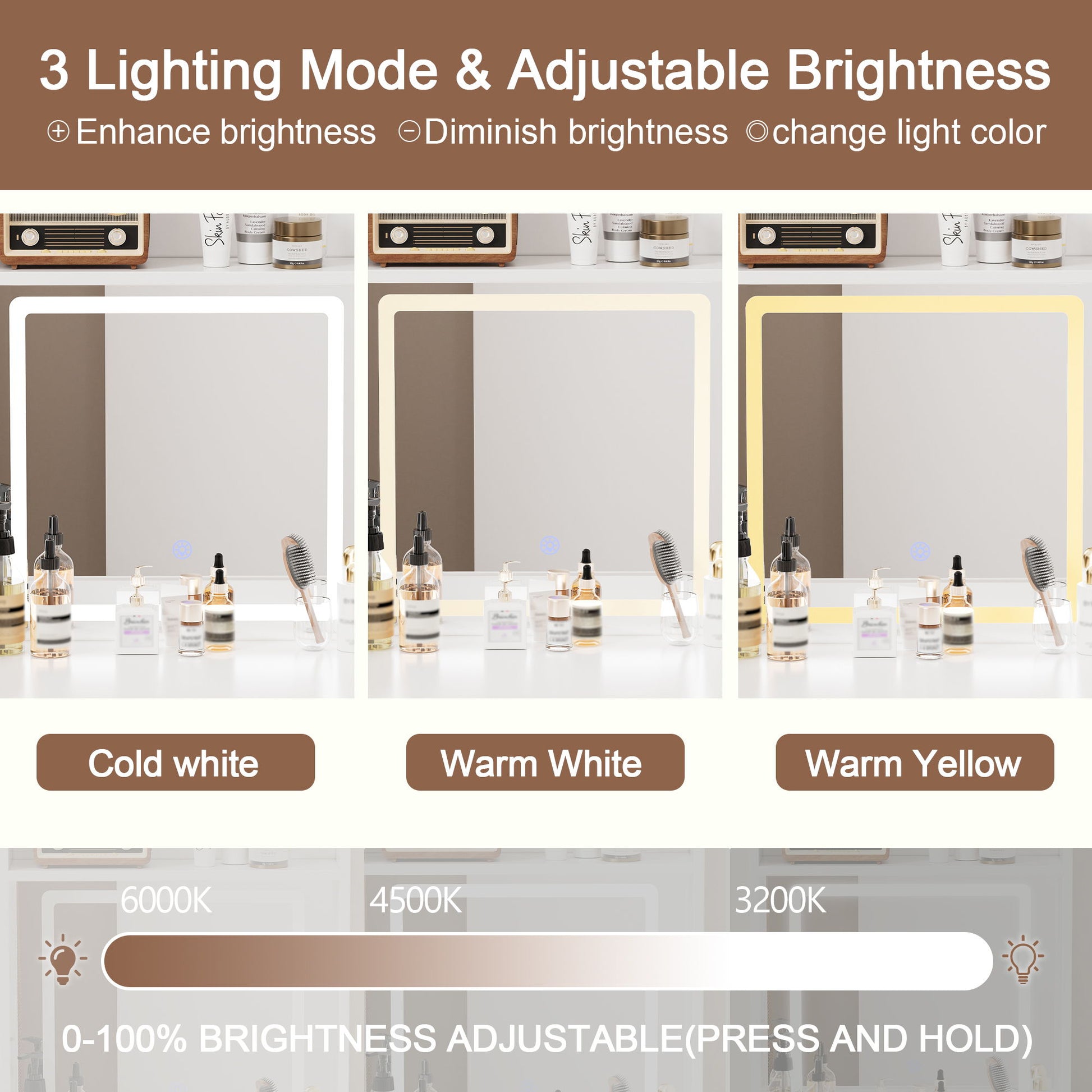 - Adjustable Makeup Mirror: You can switch between natural, warm, and cold light with this mirrored vanity table, choosing different lights according to different scenes and makeup needs.