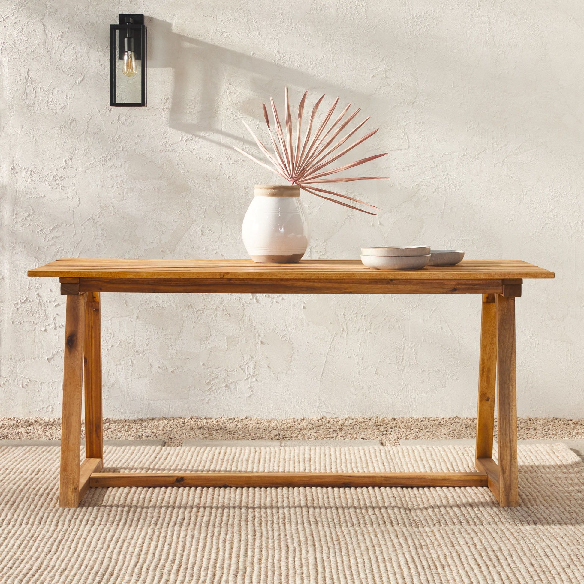 Contemporary Solid Wood Slat Top Patio Dining Table - Natural