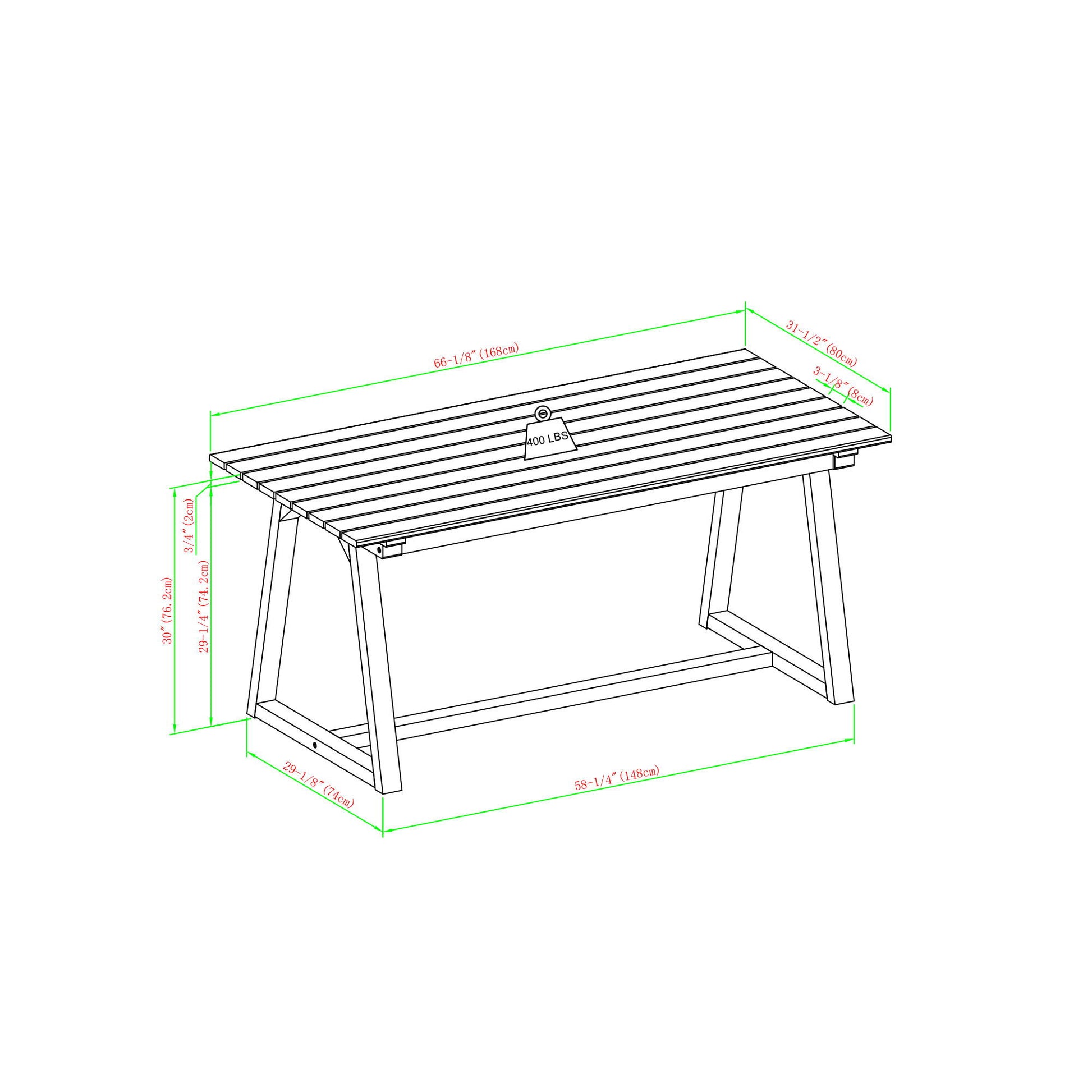 - Table supports up to 400 lbs.