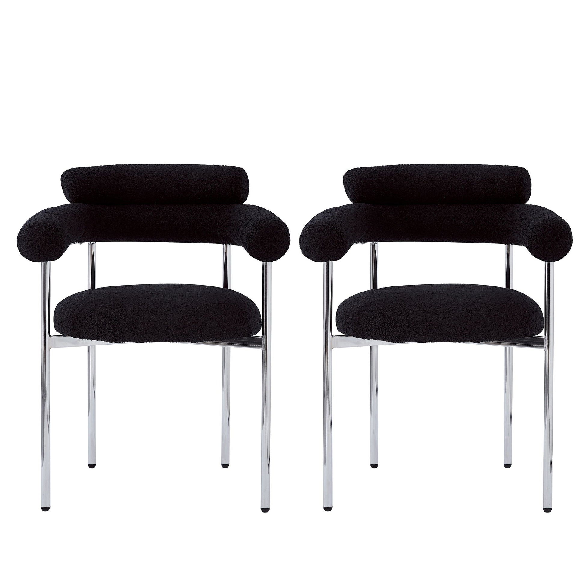 Contemporary Upholstered Armchair Dining Chairs With Metal Legs (Set of 2) - Black