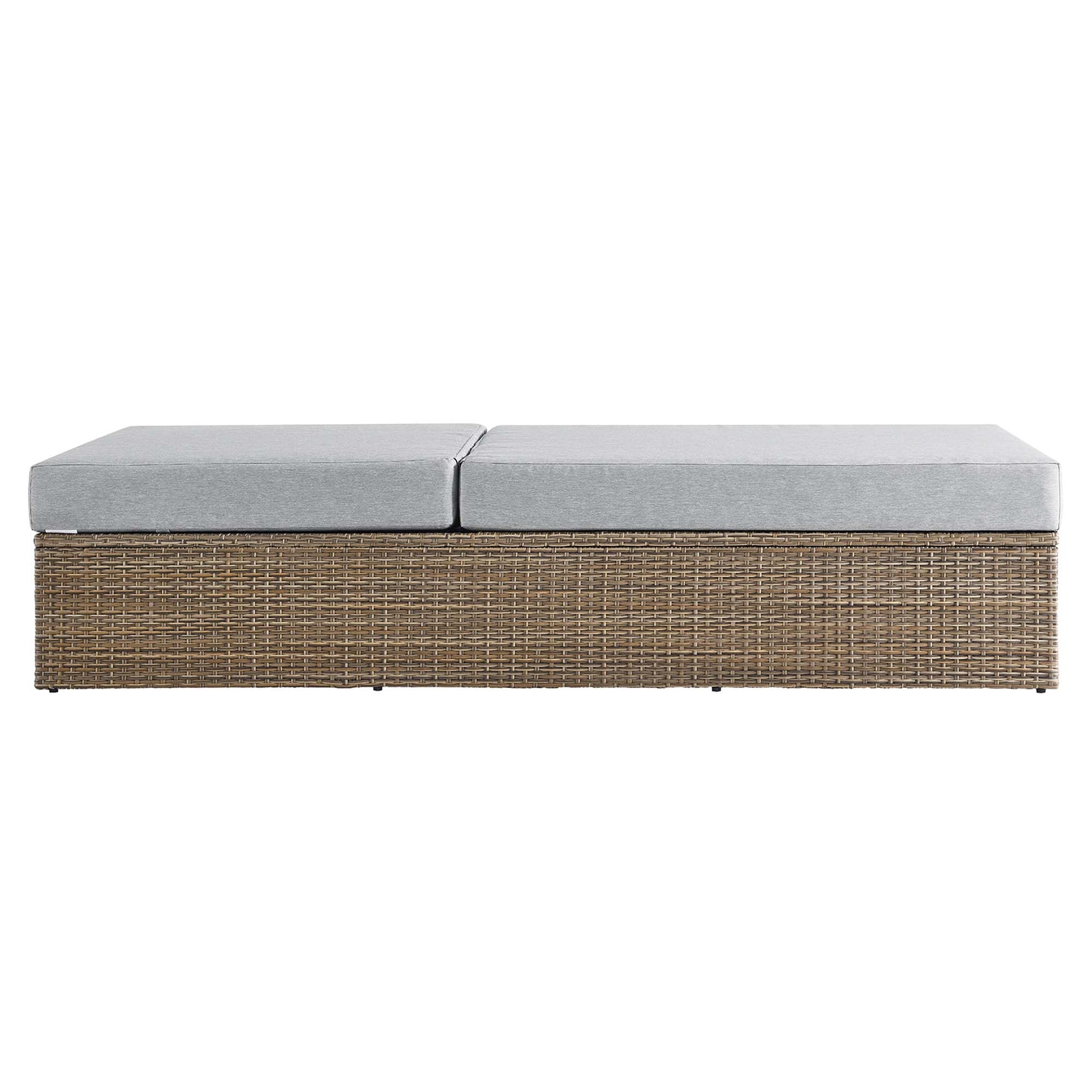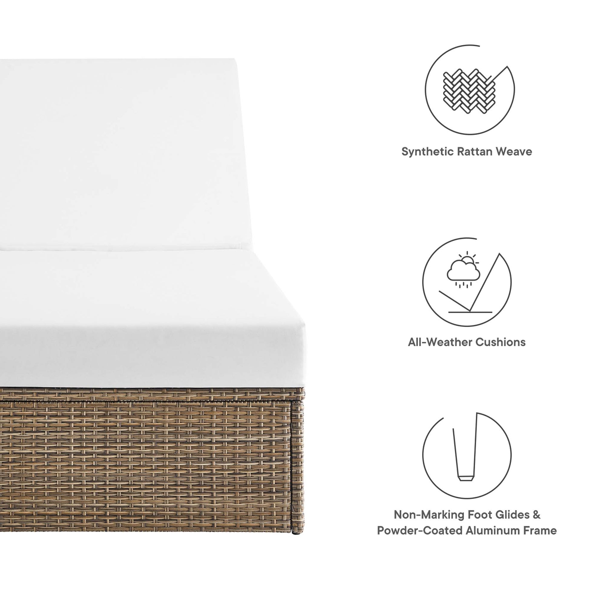 Surround yourself with warm weather and good company with the Convene Outdoor Collection. Made with synthetic rattan weave and a powder-coated aluminum frame, this outdoor chaise lounge leaves a positive impression on your guests while enhancing your patio, backyard, porch, or poolside with modern style and appreciated texture. A lasting all-weather addition to your outdoor space, this outdoor lounge chair is complete with dense foam padded cushions with water-resistant zippered covers and non-marking foot pads to protect your flooring. Assembly required. Easy to follow instructions included. Weight Capacity: 330 lbs.