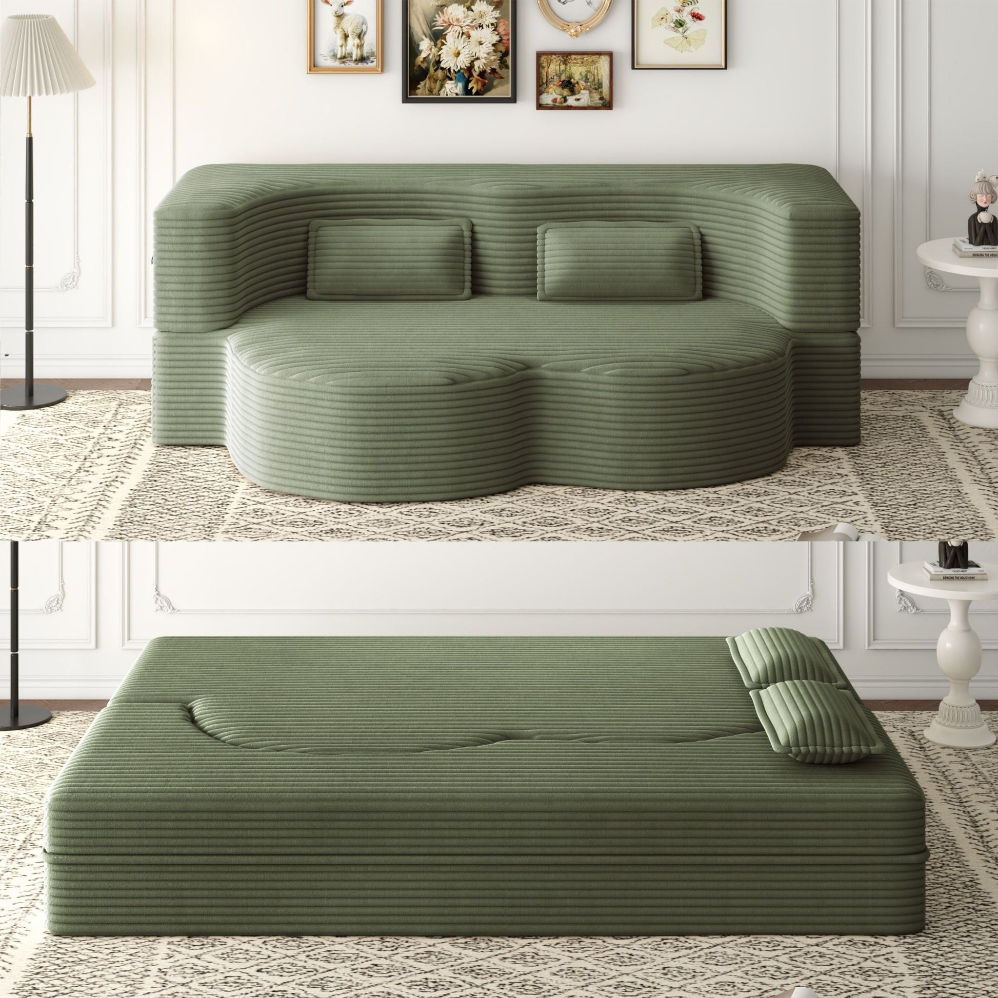 Convertible Foam-Filled Sleeper Sofa Bed With 2 Pillows