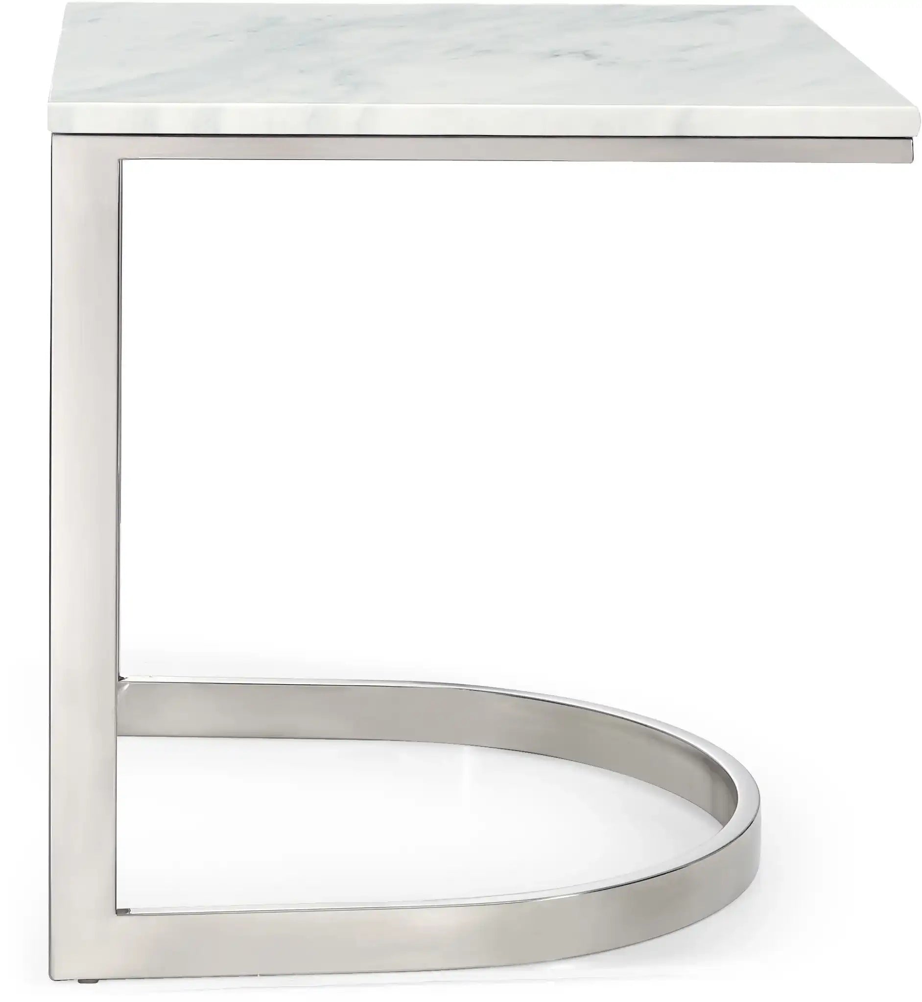 Lend your living room or den a modern slant with the Copley end table from Meridian Furniture. This end table features geometric bases, and a sleek chrome finish that gives your space a bold, up-to-the-minute look. Each table has a solid stone top for durability and style.