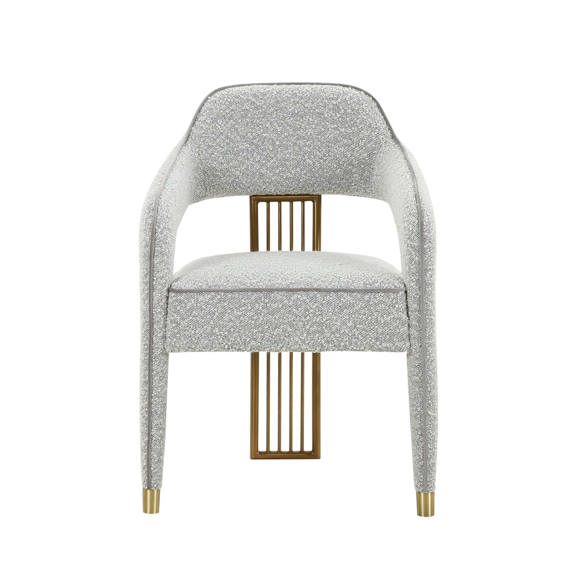 The Corralis chair is here to make a luxe statement with its elegant silhouette and art deco design. This stunning chair features a sturdy wooden frame upholstered in a comfortable linen fabric, supported and accented by a gold stainless steel base. This is the perfect piece to glam up your dining experience!