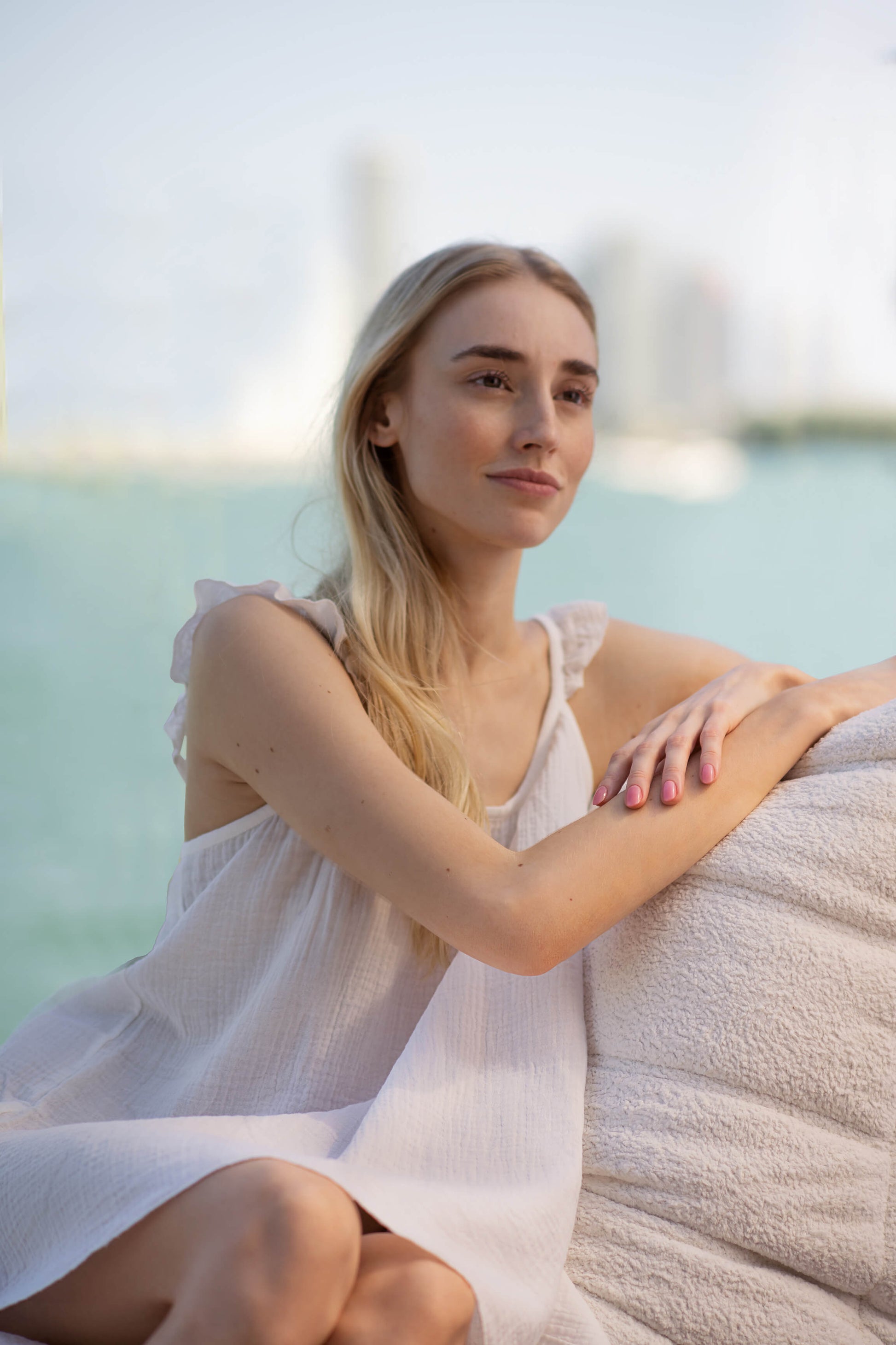 Light, effortless, and subtly romantic, this cotton muslin slip is designed for warm, easy mornings and soft summer nights. The airy silhouette drapes gently across the body for a flattering, feminine fit, while the delicate straps and lightweight feel make it your go-to for lounging or layering.