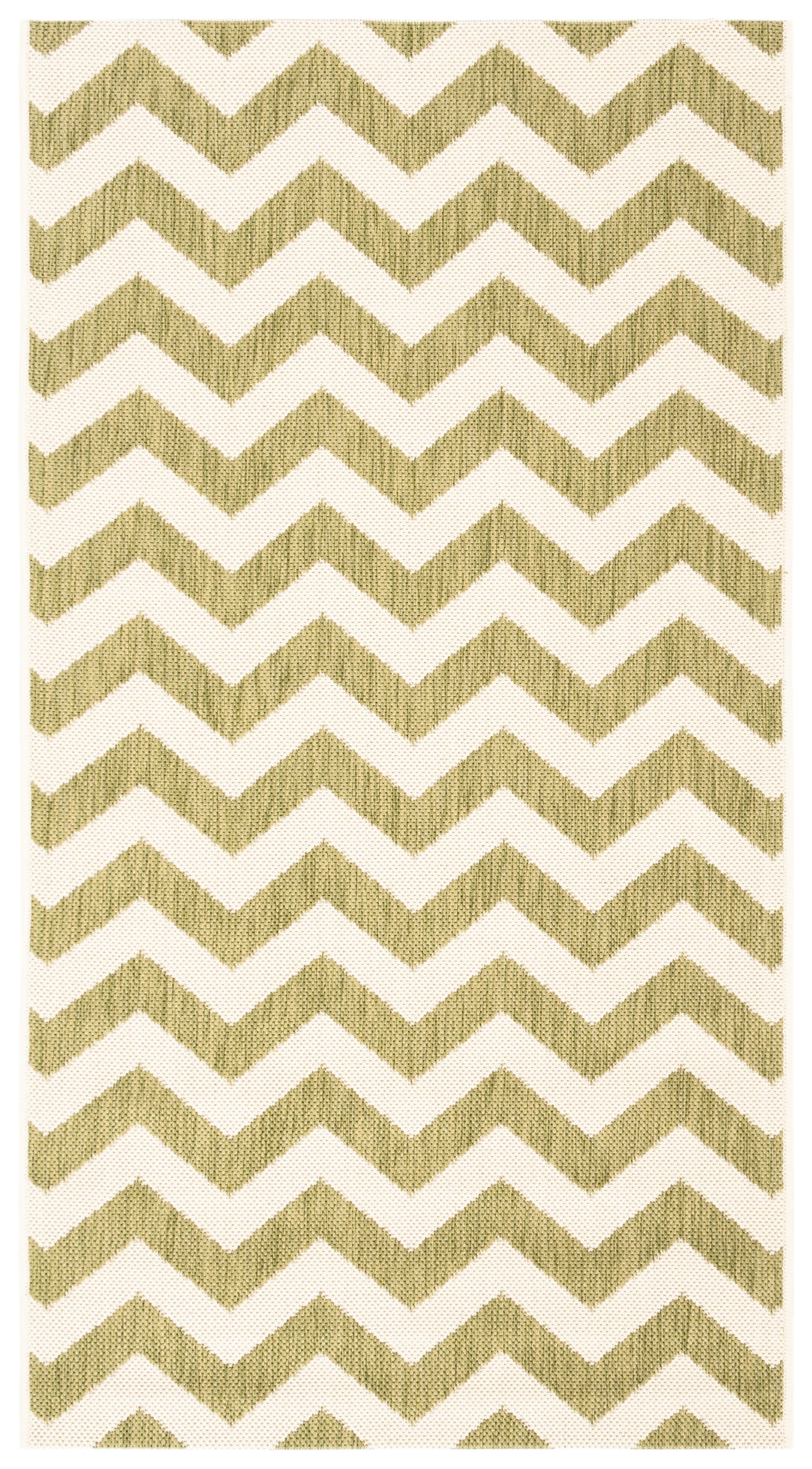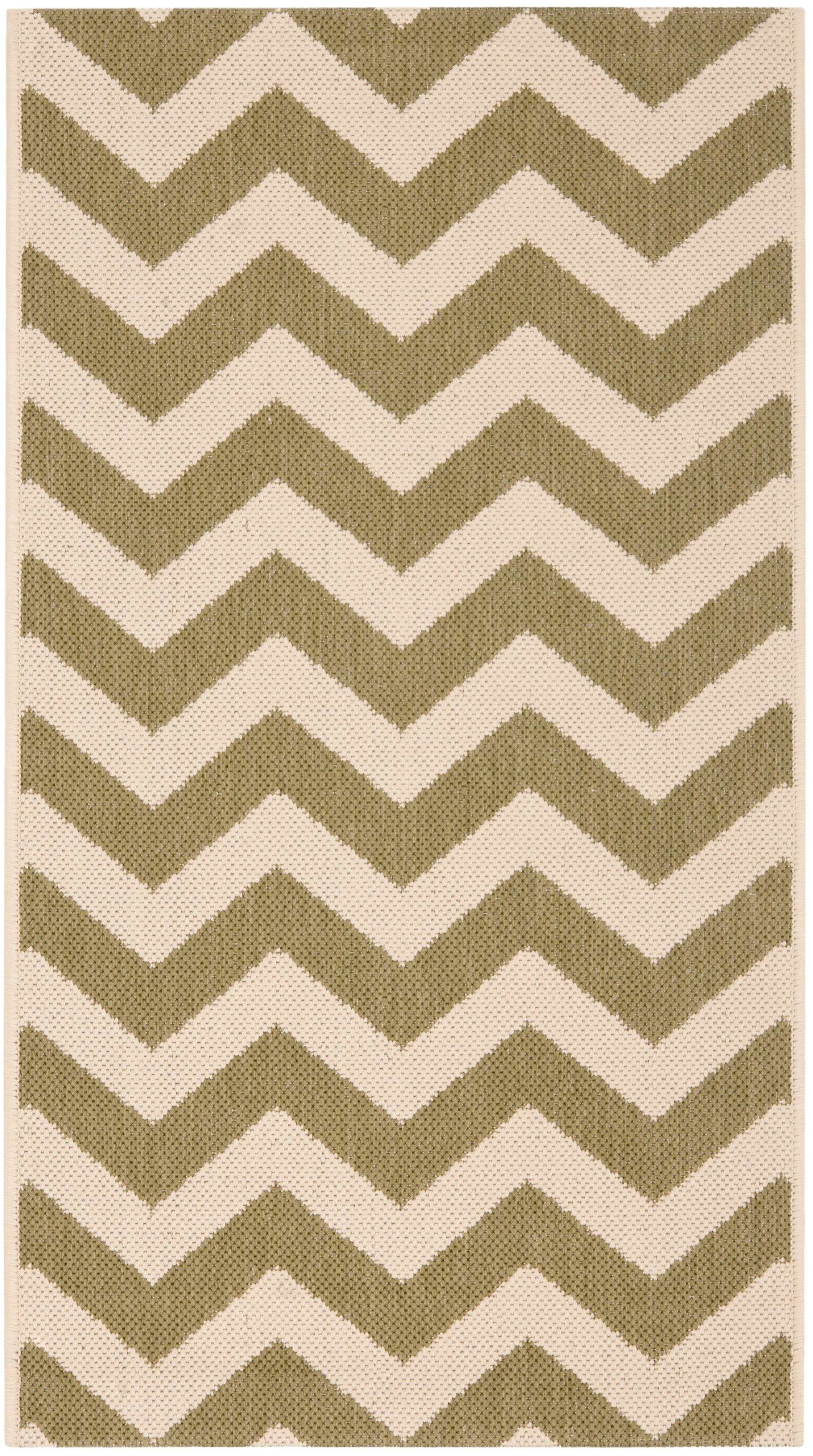 Elevate your indoor or outdoor space with this sophisticated and eco-friendly 2' X 3'-7" accent area rug. The dynamic chevron pattern in refreshing shades of green and beige promises to make a stylish statement in any setting. Expertly crafted in Turkey, this rug boasts a power-loomed construction that creates a durable yet fine pile, standing at an ideal height of 1/4" for easy placement and upkeep. Made of a robust blend of 88% Polypropylene and 12% Polyester, this area rug offers the perfect fusion of resilience and softness. Its durability ensures it stands up to the elements outside, as well as the high traffic of indoor use.