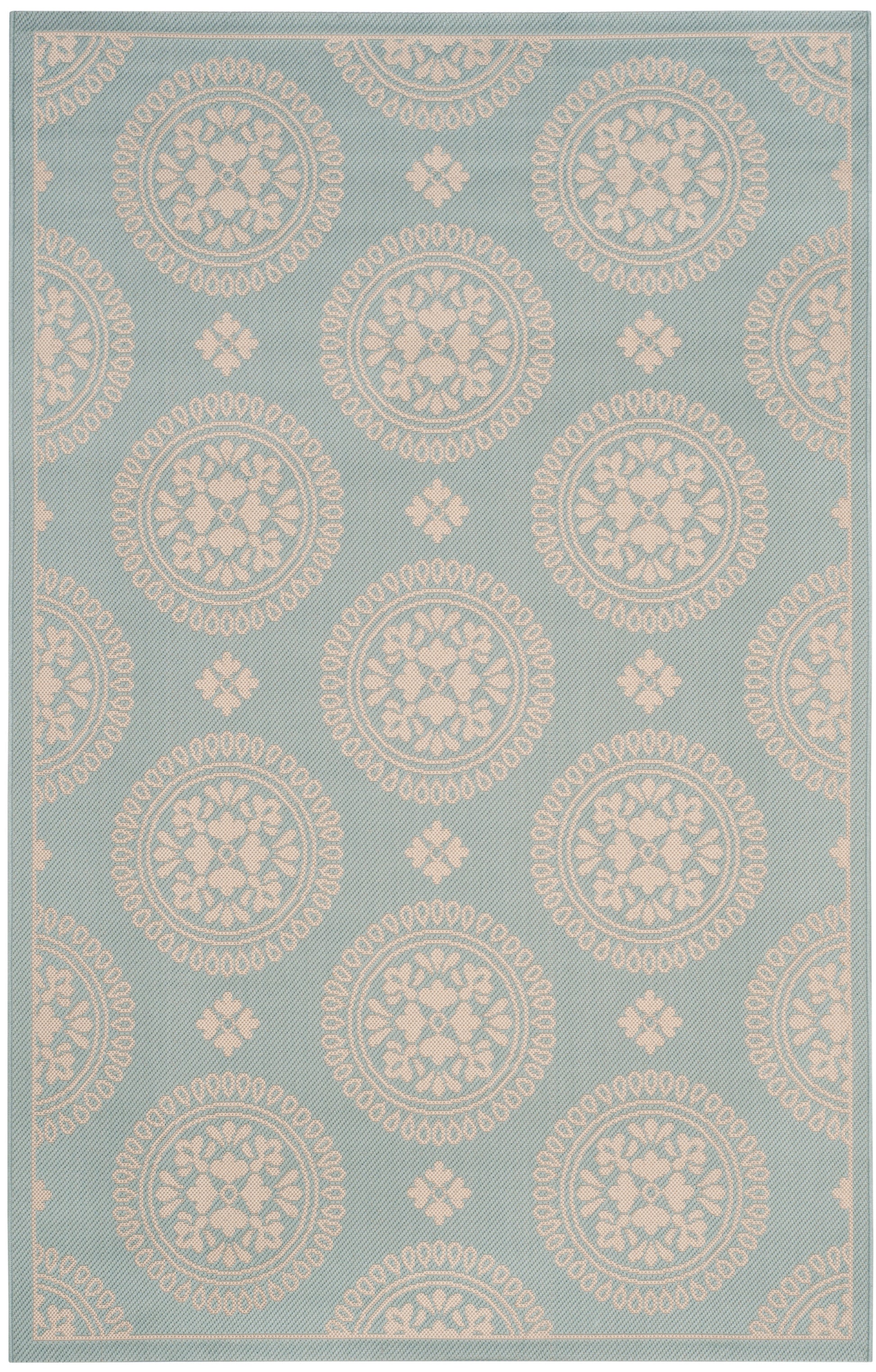 The rug's spa color palette lends a serene and tranquil ambiance to your decor, complementing a range of interiors from the modern to the classic. The design features a harmonious medley of round medallions with intricate patterns that exude a timeless charm. The intricate details are beautifully showcased in every piece, contributing to the rug's overall aesthetic appeal.