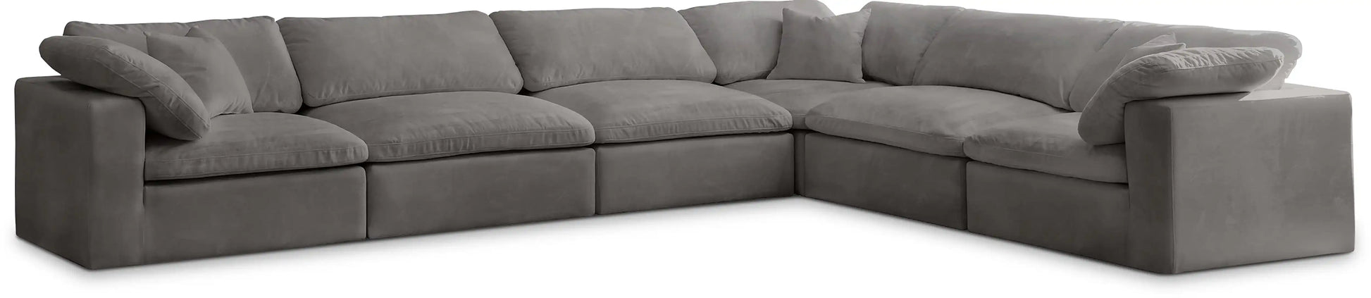 Bring home this Cozy 6-piece sectional for a fresh new look. Embrace casual elegance with this Cozy velvet cloud-like comfort modular fiber-filled seating option. Handsome from all angles, this piece features soft velvet upholstery to make it an easy fit in any room. This modular piece can be combined with other items in the Cozy collection to create a seating group of your dreams. The cushions on this piece are exceptionally comfortableand filled with fiber for luxury that you deserve as you rest and relax.