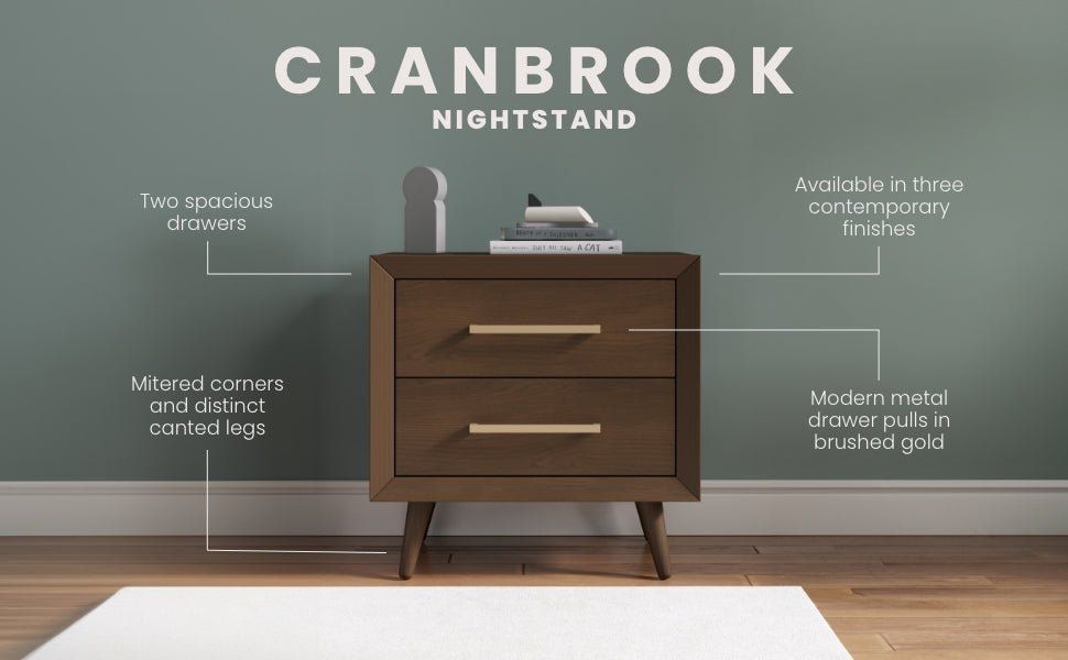 The Cranbrook Nightstand embodies a sophisticated blend of functionality and timeless design, making it an essential addition to any child's bedroom. Evoking Mid-Century Modern aesthetics, it features mitered corners, elegantly turned legs, and gracefully rounded spindles, all finished in a rich, toasted chestnut that enhances its visual appeal. This piece not only stands as a testament to exquisite craftsmanship but also maintains a sleek silhouette, seamlessly pairing with other elements of the Child Craft Cranbrook nursery furniture collection.