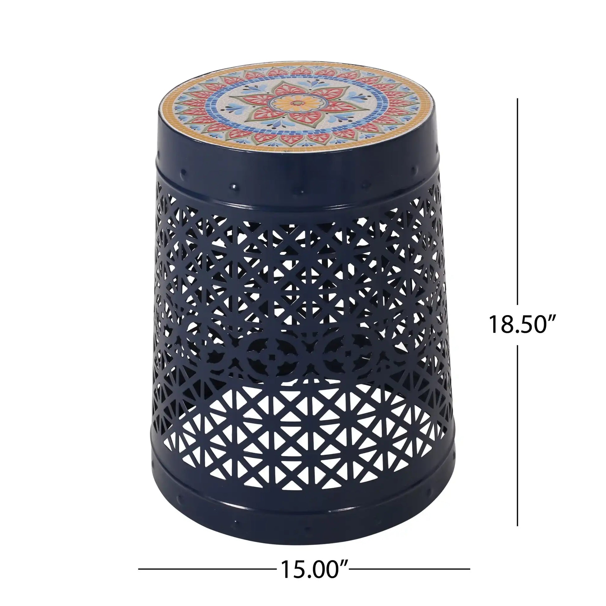 Cranbrook - Side Table With Tile Mosaic Top - Dark Blue