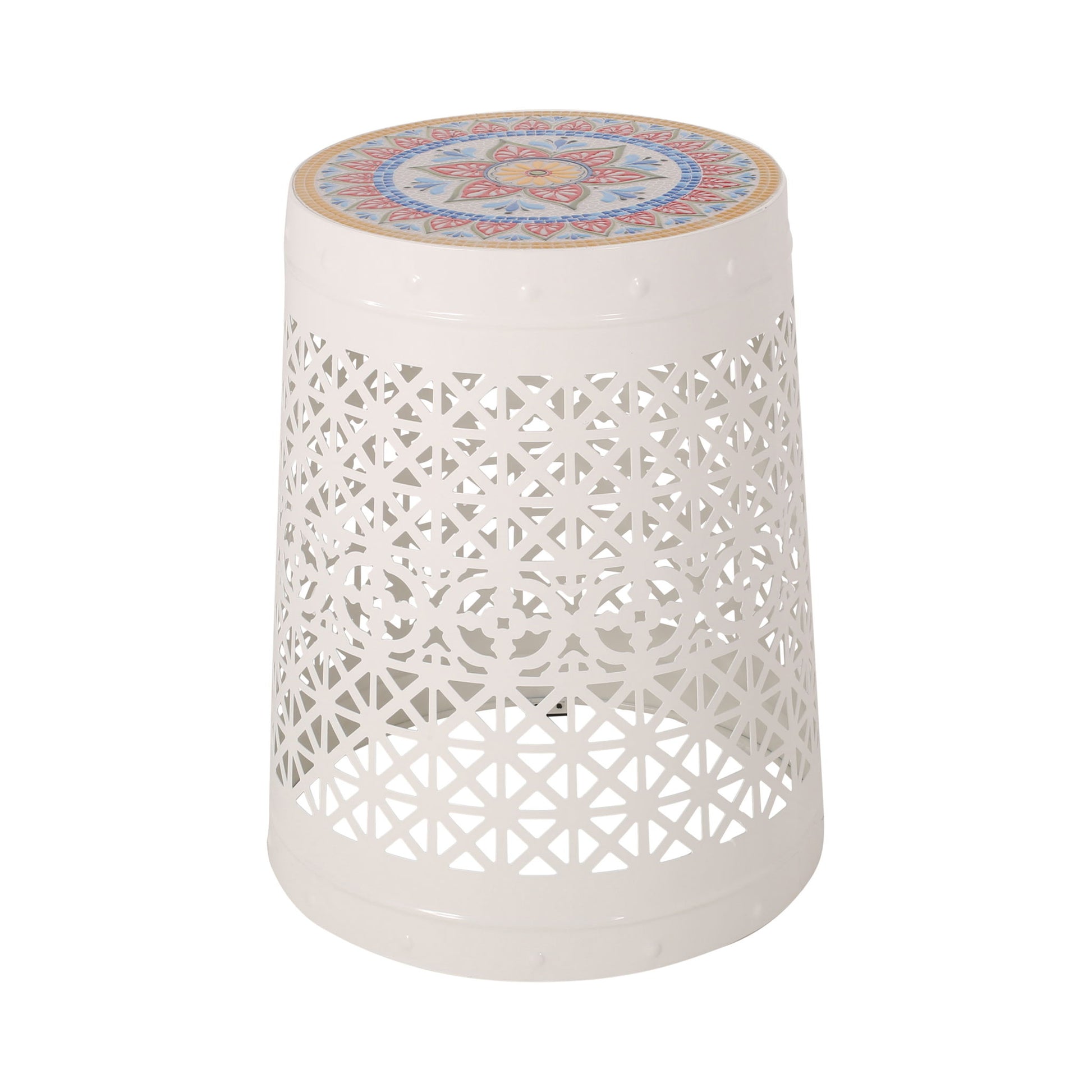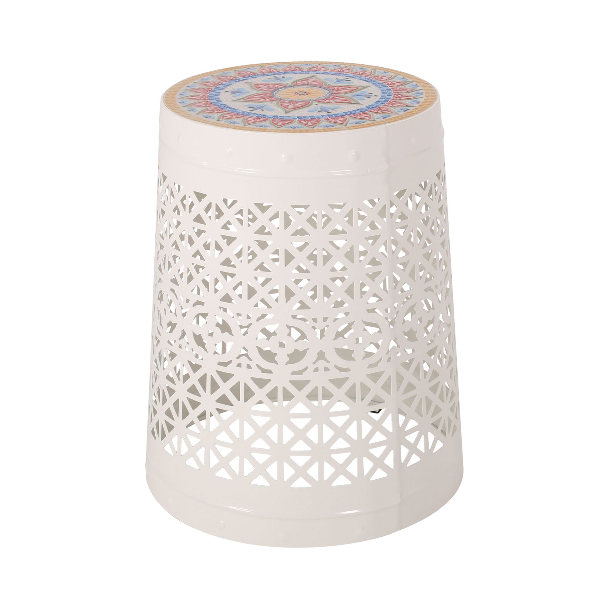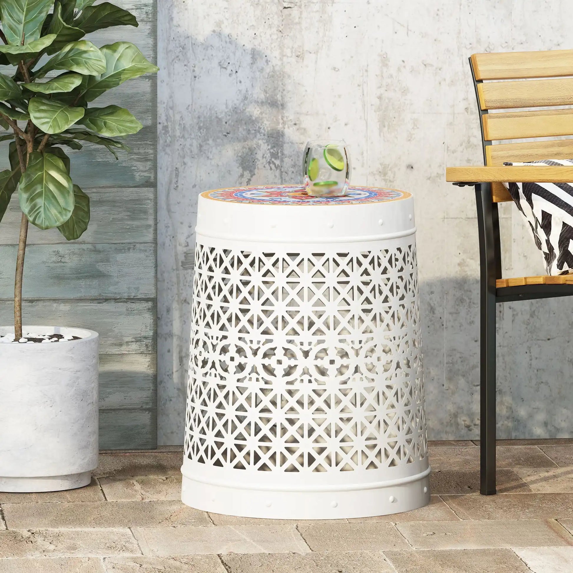 Transitional Cranbrook Side Table With Tile Mosaic Top - White