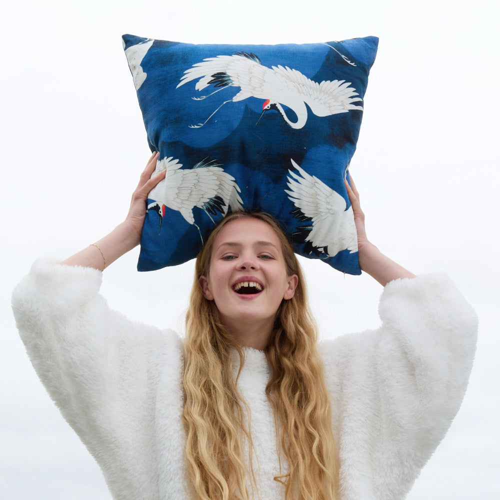 This throw pillow captures a sense of serenity through its beautiful crane design. Printed on 100% cotton, this big throw pillow blends natural texture with timeless artistry. Designed to pair beautifully with the rest of our decorative pillow collection, it brings softness, movement, and refined beauty to any space.