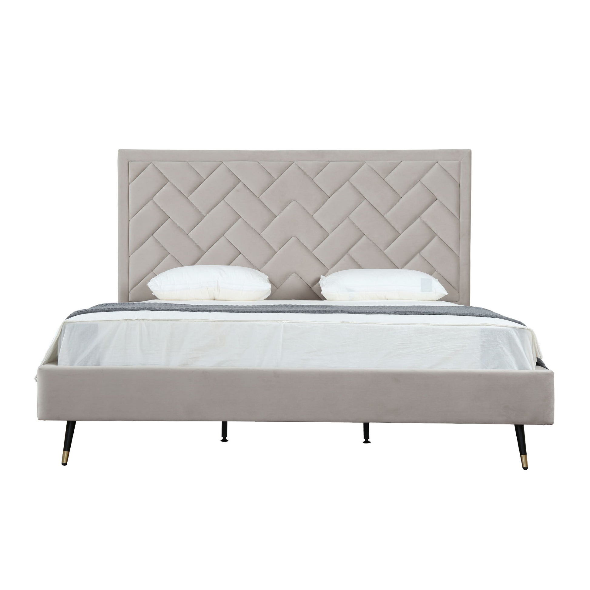 Crosby - Queen Bed With Upholstered Headboard And Slats - Greige