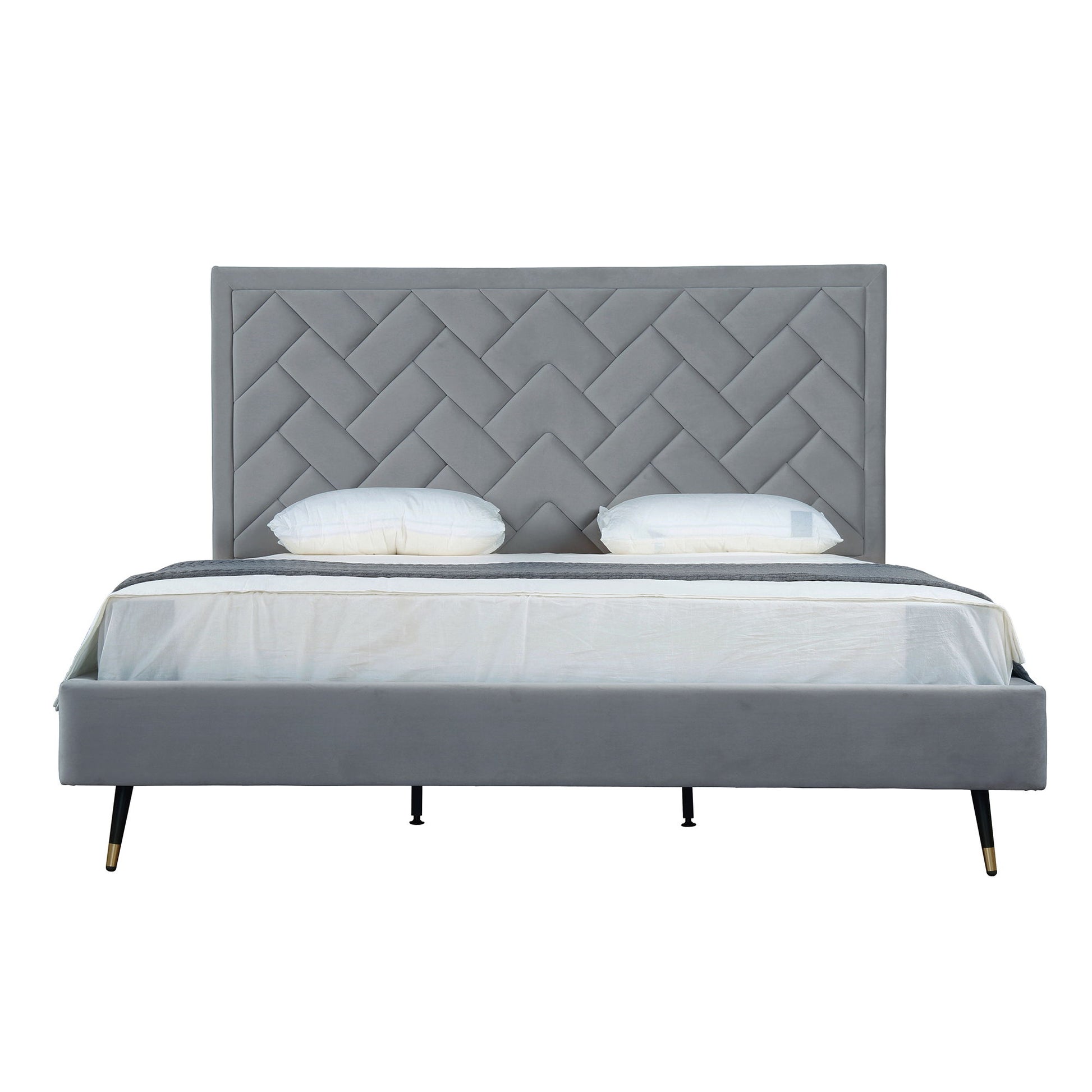 Crosby - Queen Bed With Upholstered Headboard And Slats - Grey