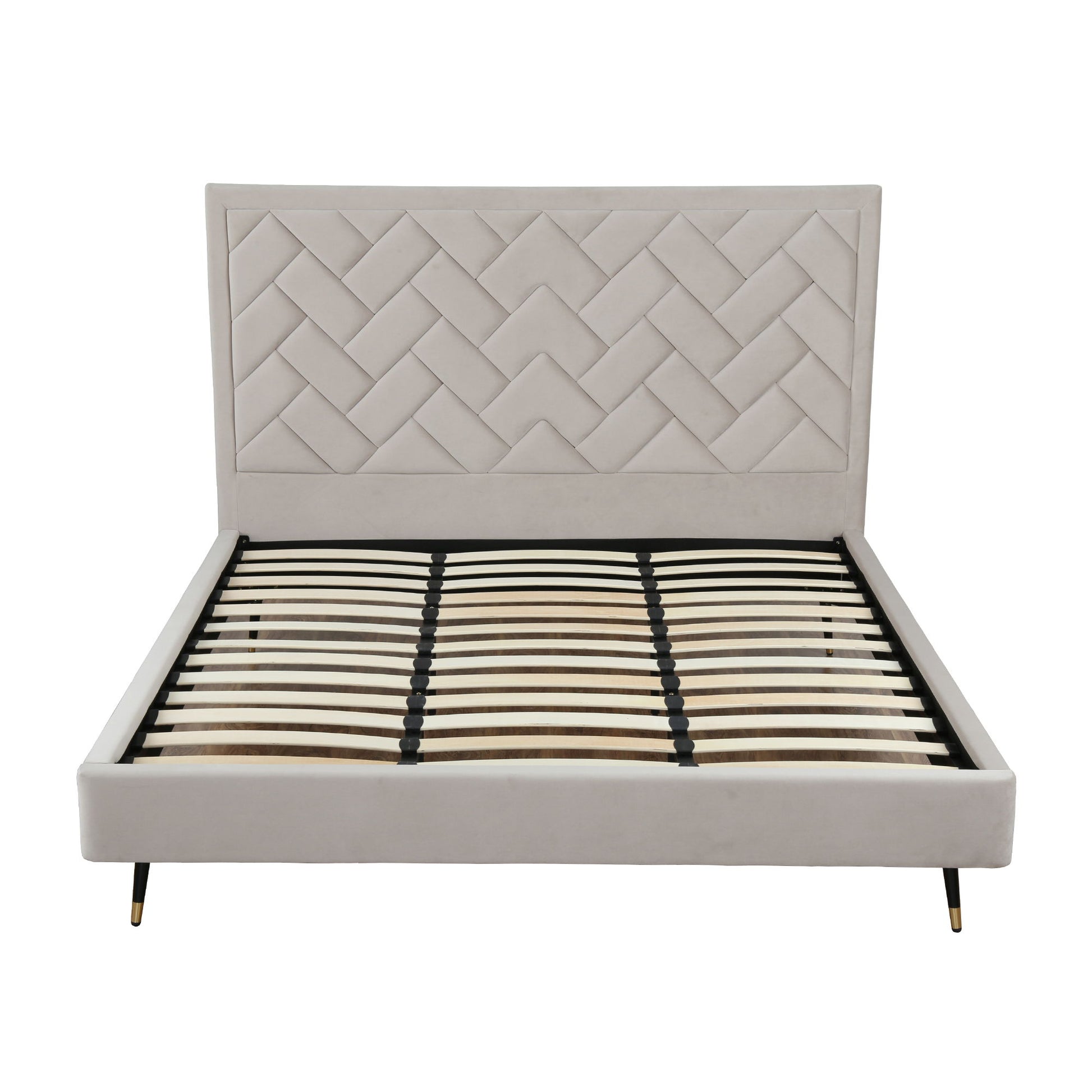 Crosby - Queen Bed With Upholstered Headboard And Slats - Greige
