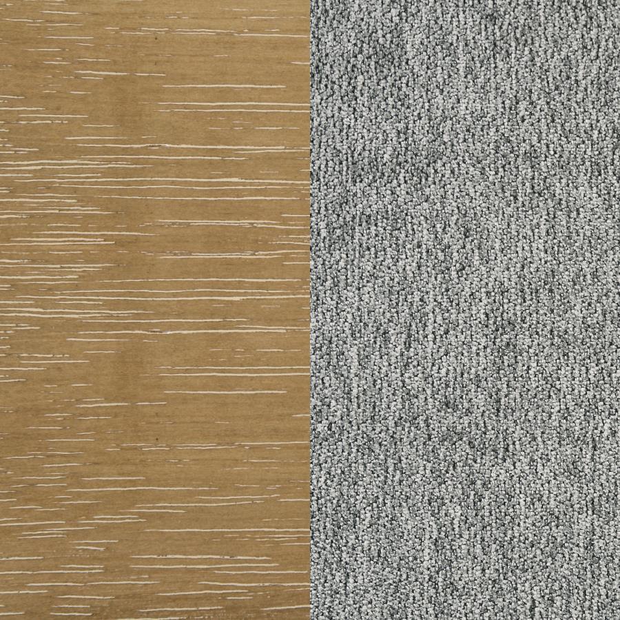 This mid-century dining set combines sculptural elegance with practical performance. The fixed-top table features a recessed ceramic surface with marble-like tones framed in solid wood, offering an impermeable, heat-resistant, and easy-to-clean finish. Slatted angular legs add architectural flair. The side chairs provide plush grey upholstery, curved backrests for support, and gently rounded frames. Crafted for comfort and durability, this set seats six with effortless style.