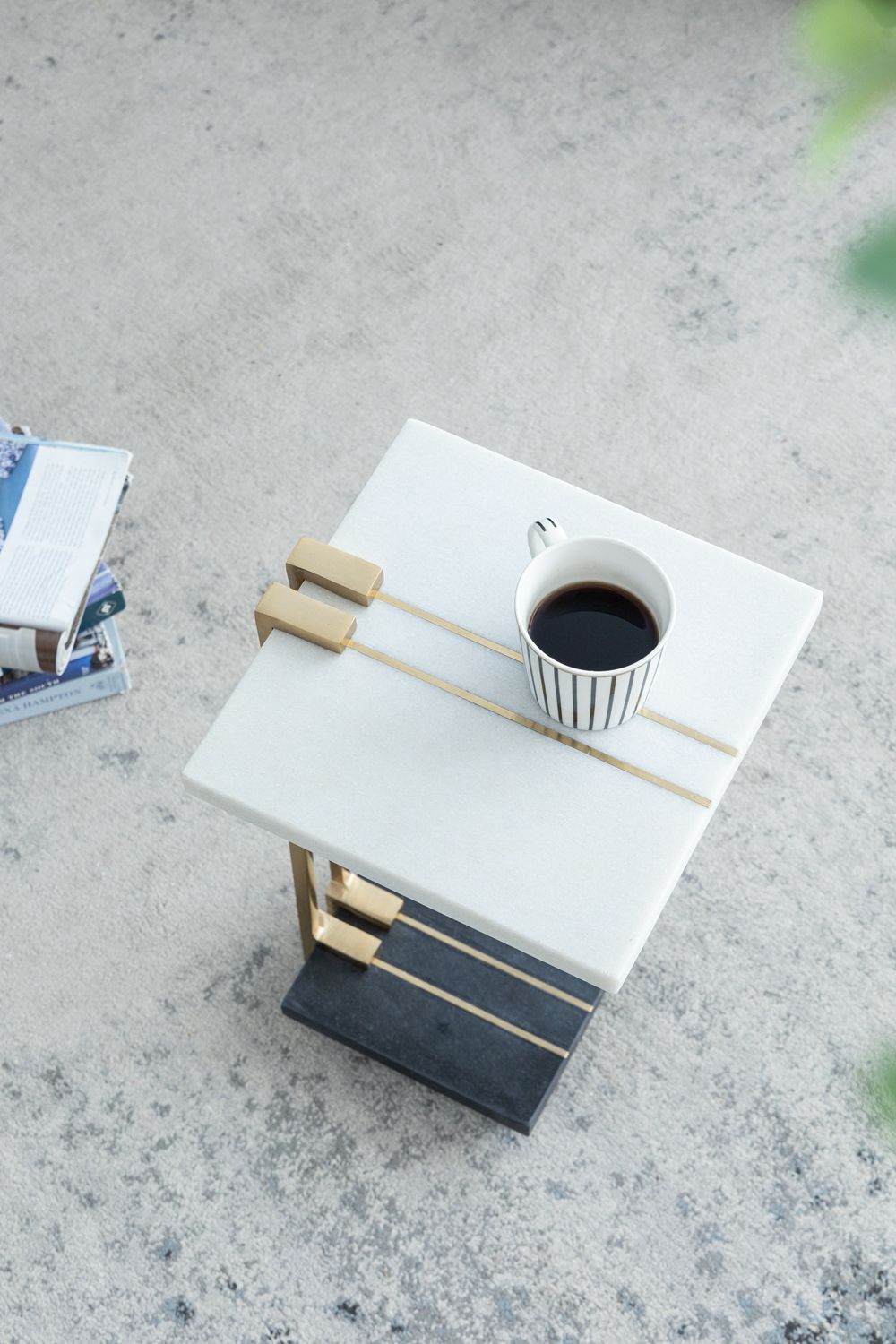 C Shaped Side Table, Artistic Accent Table For Living Room - Gold