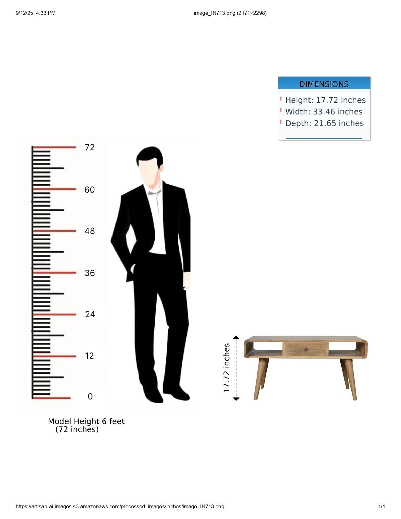 - Curved Oak-ish Coffee Table - This Coffee Table has a modern and clean design with it's rounded edges. It has been constructed from 100% Solid Mango Wood in a rich, oak-ish finish. Some features include 2 drawers which has a shiny knob and 2 open slots to place any books, photo frames, ornaments etc and 4 Scandinavian style legs.
