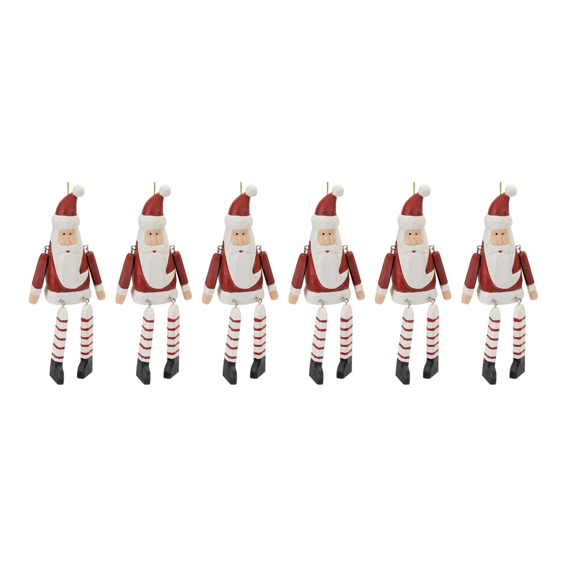 Get into the holiday spirit with this set of Dangle Santa Ornaments! Whether you're adding a touch of cheer to your tree or gifting to a loved one, these ornaments will definitely bring smiles to your home. With festive red and white tones, carved design, and a quality solid wood construction, these joyful decorations are sure to last for years to come! Add a little something special this holiday season with this memorable set of ornaments.