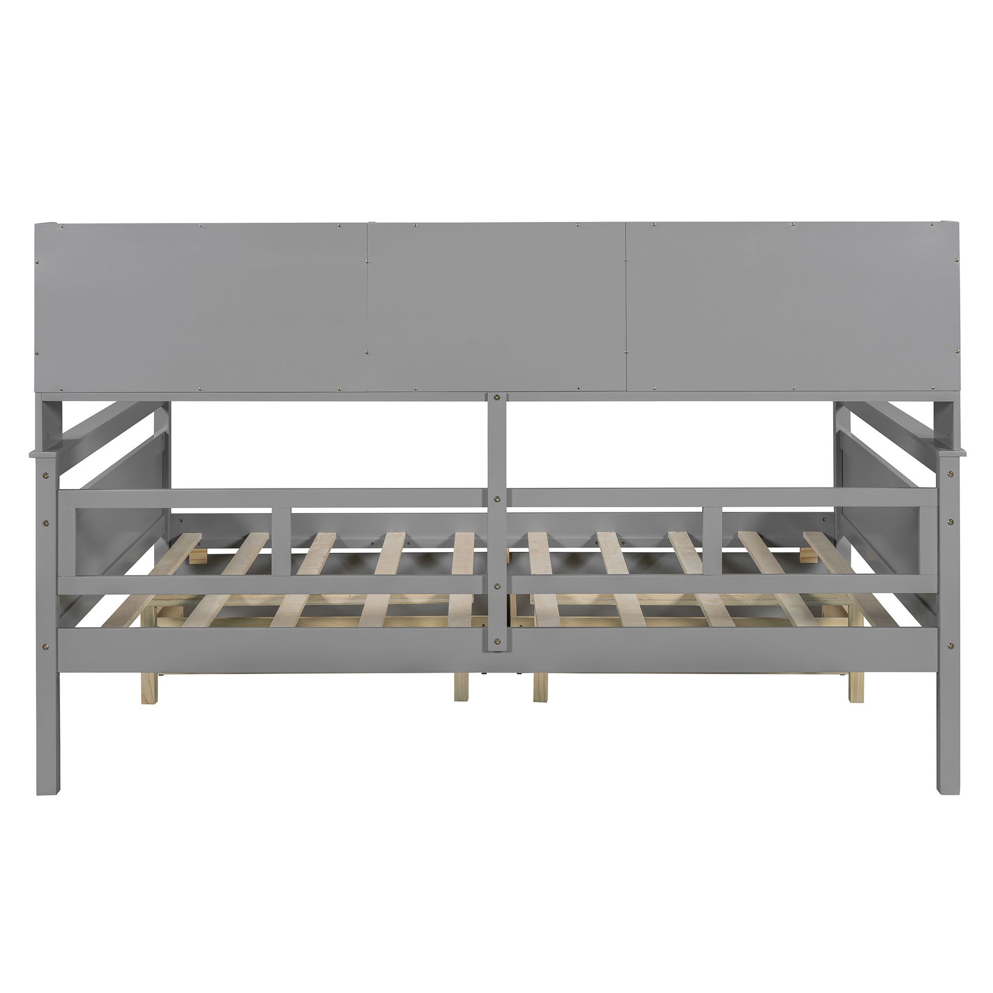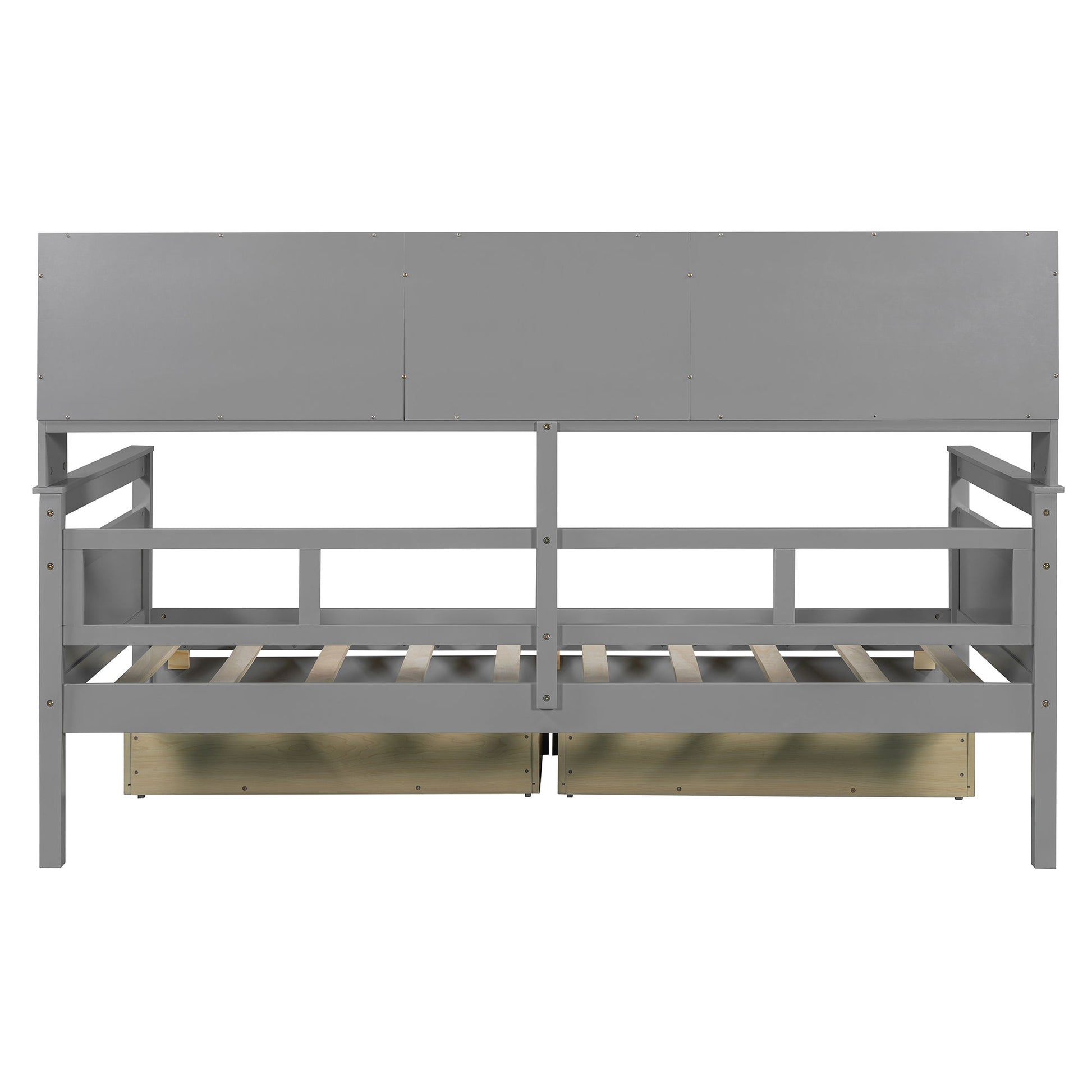 Full Size Daybed, Slat Support, With Bedside Shelf And 2 Drawers - Gray
