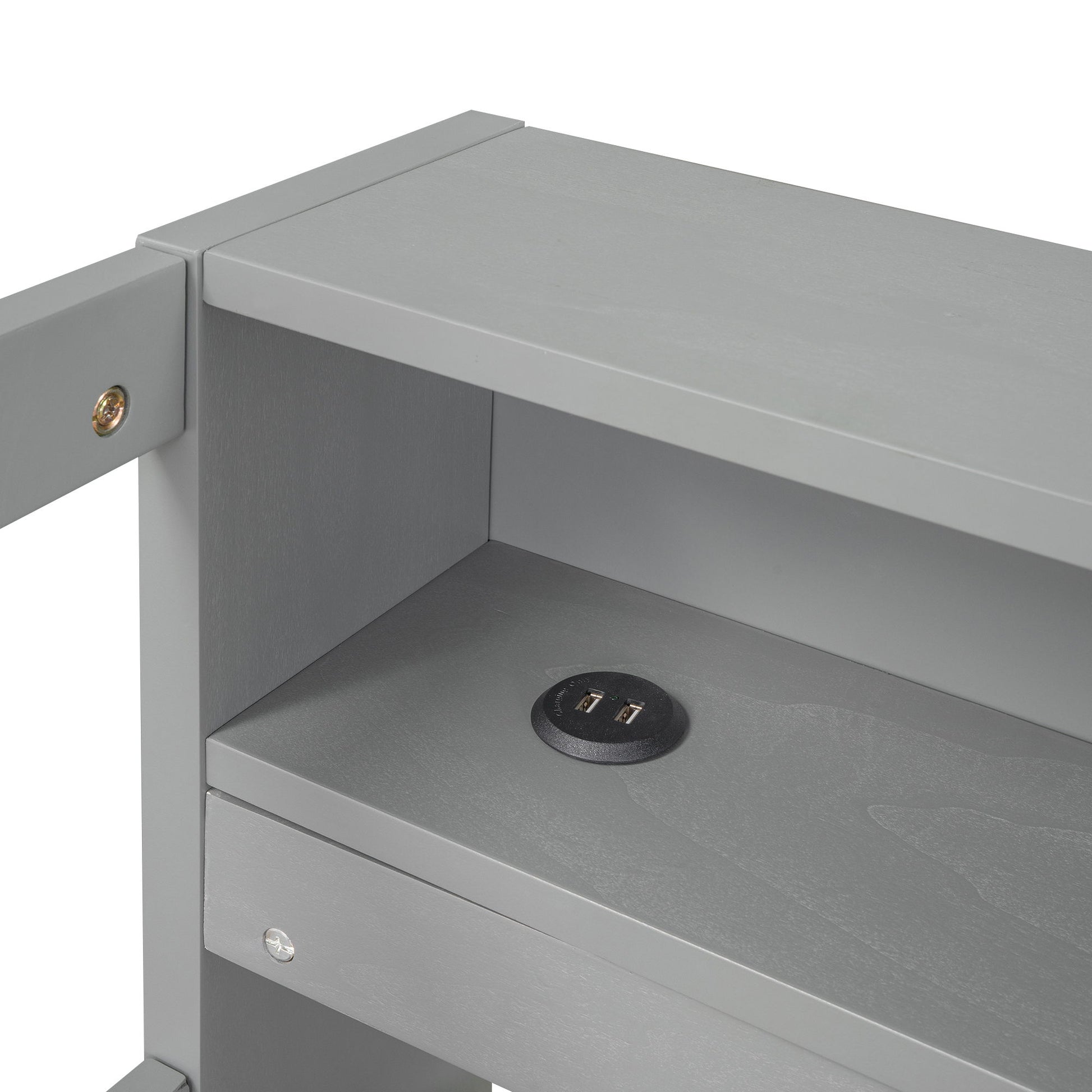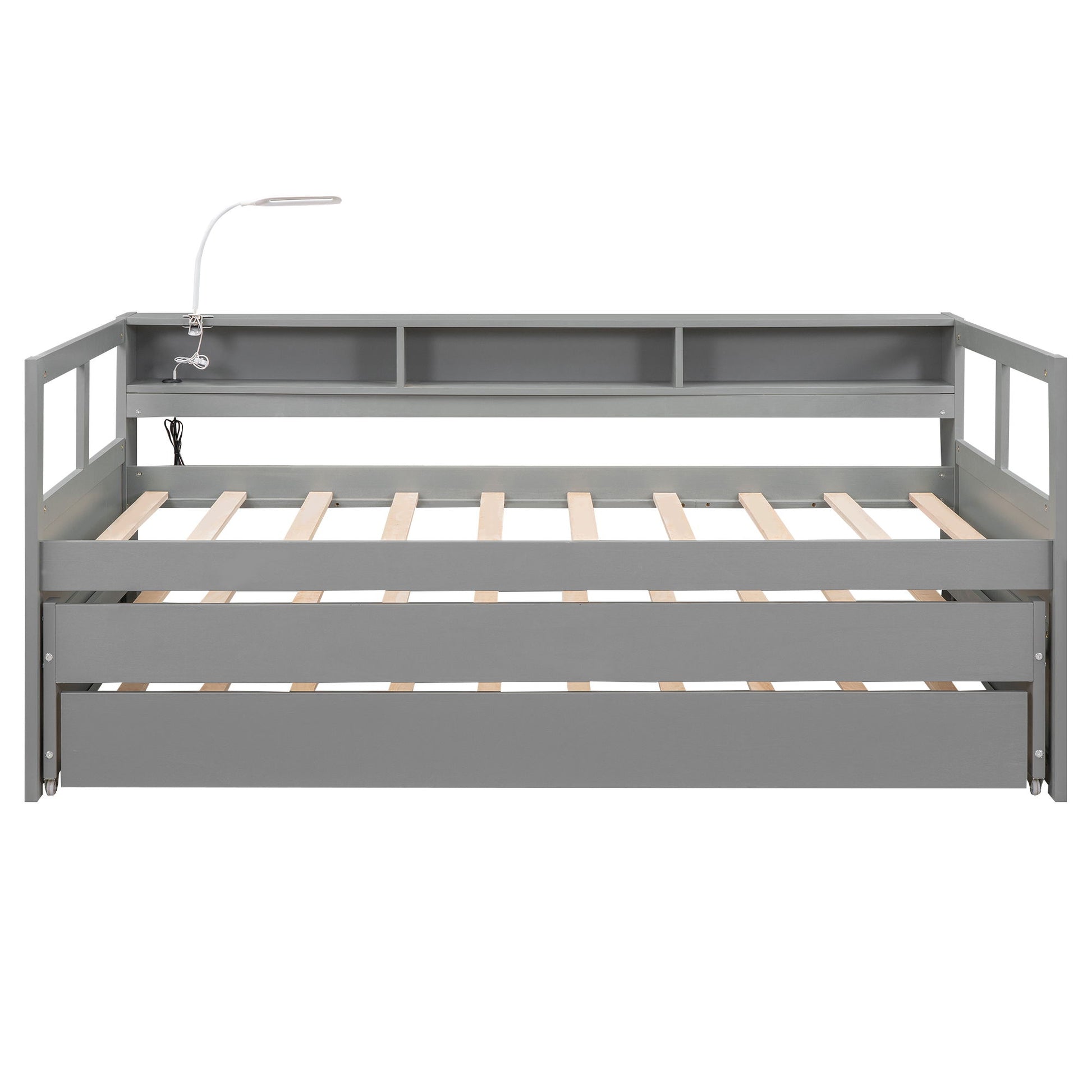 Twin Long Daybed With 2 Trundles, 3 Storage Cubbies, Built In USB Charging Light - Gray