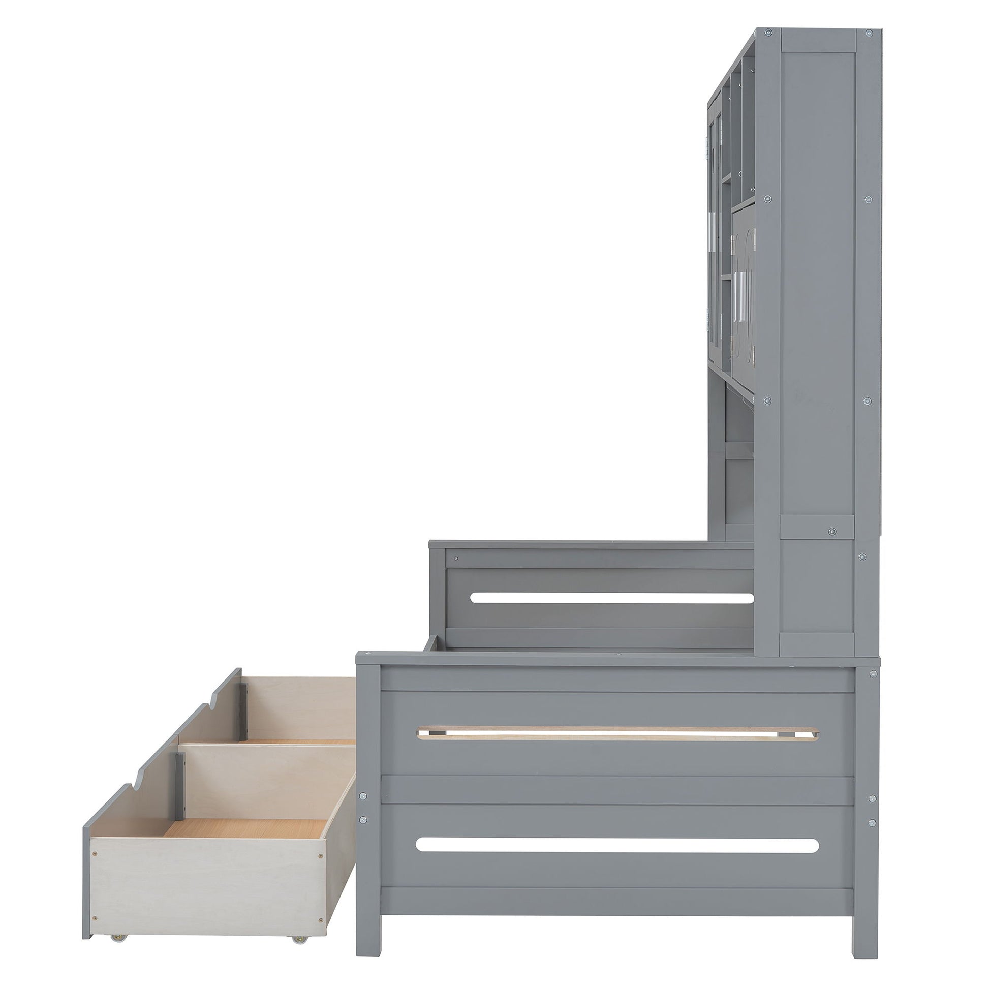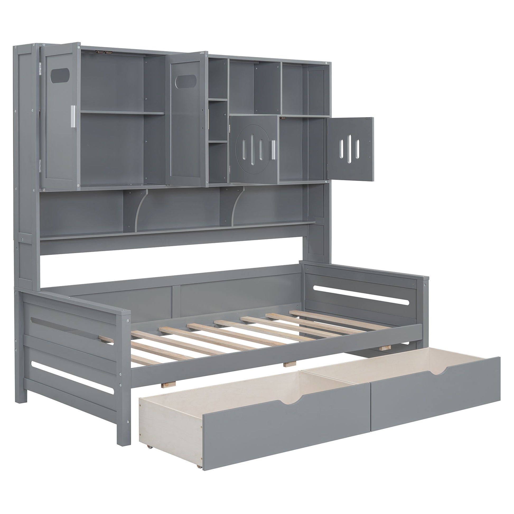Twin Size Daybed With 2 Drawers And All In One Cabinet And Shelf - Gray