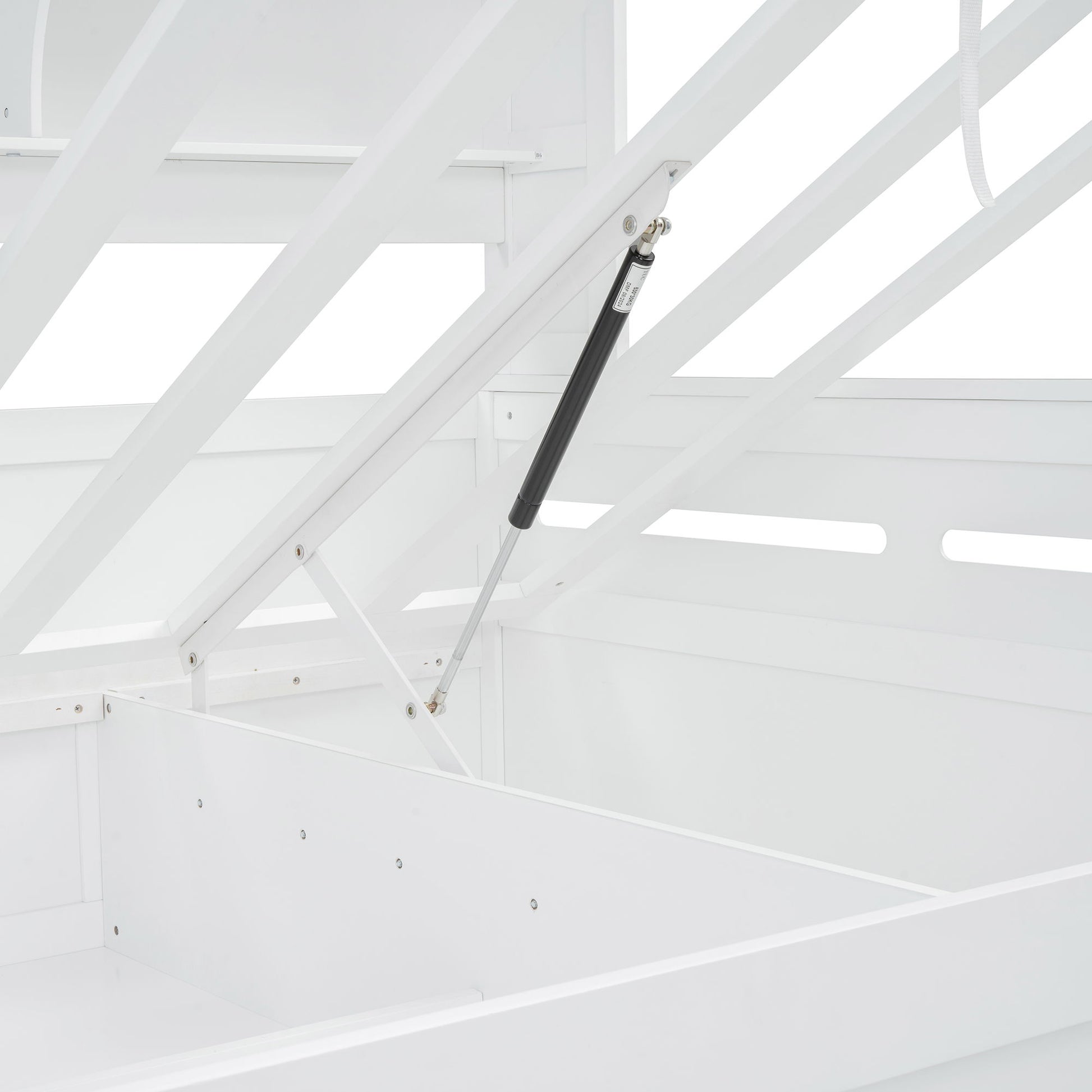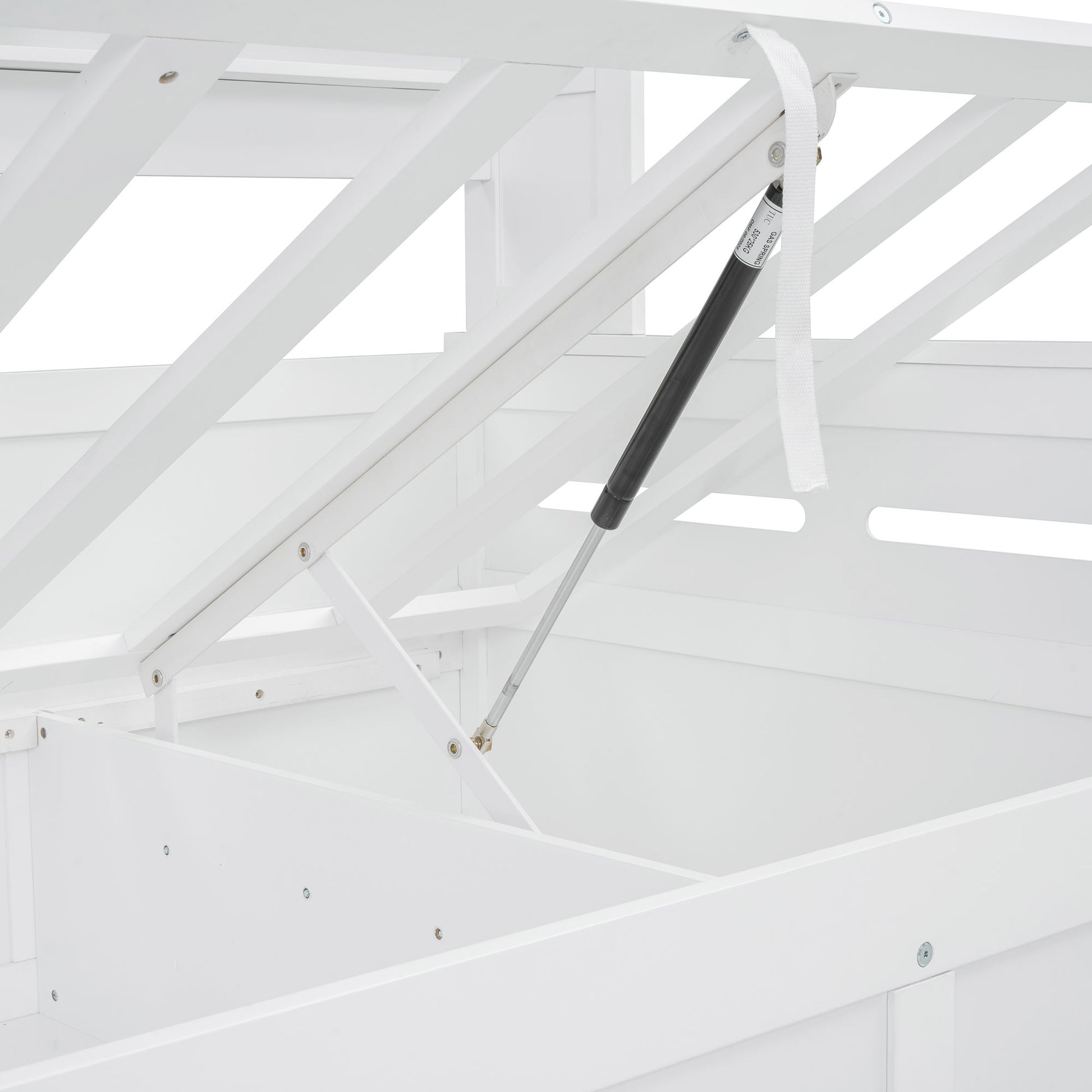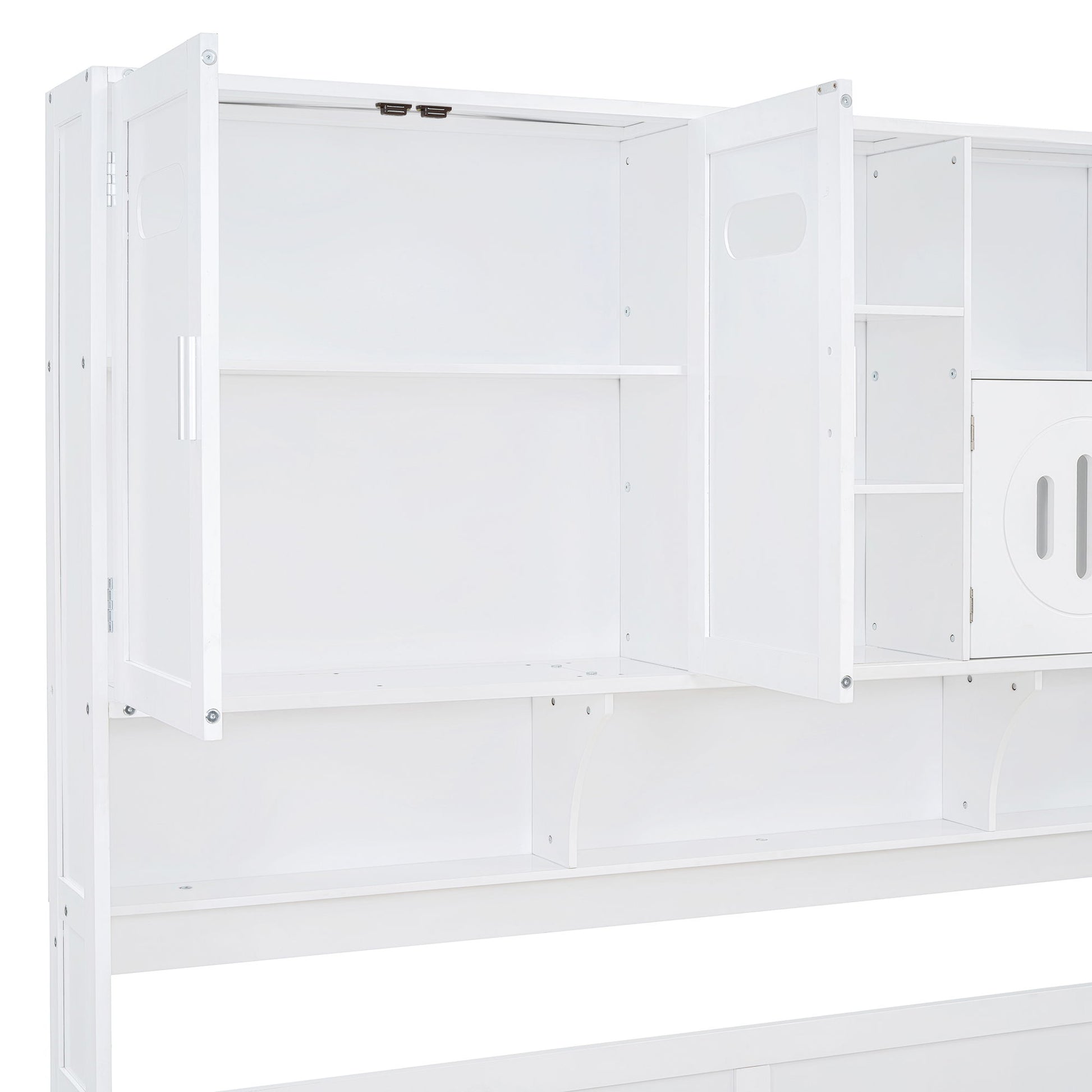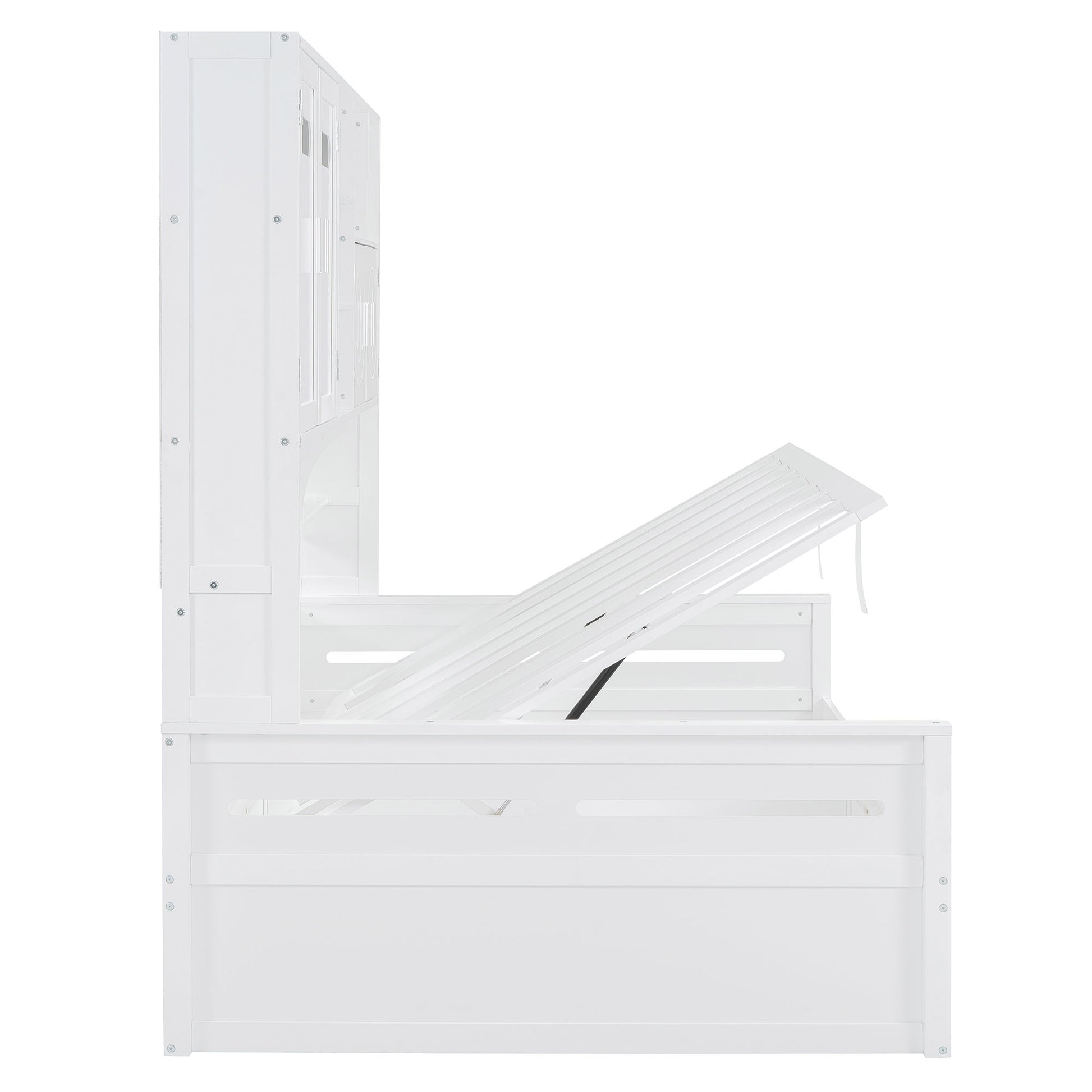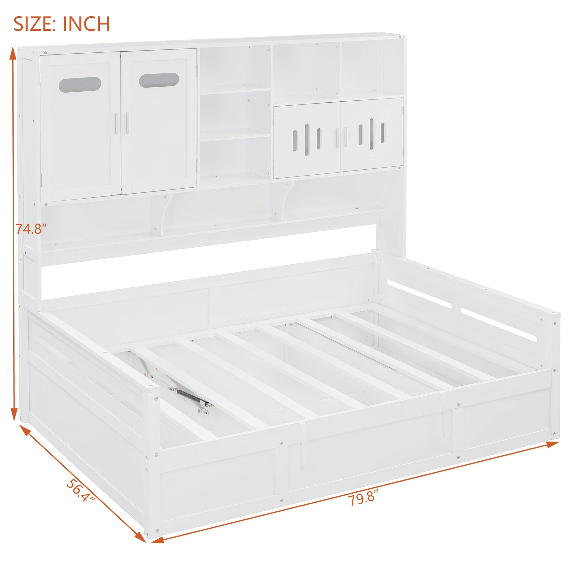 Full Size Wooden Daybed With Hydraulic Bed And All In One Cabinet And Shelf - White