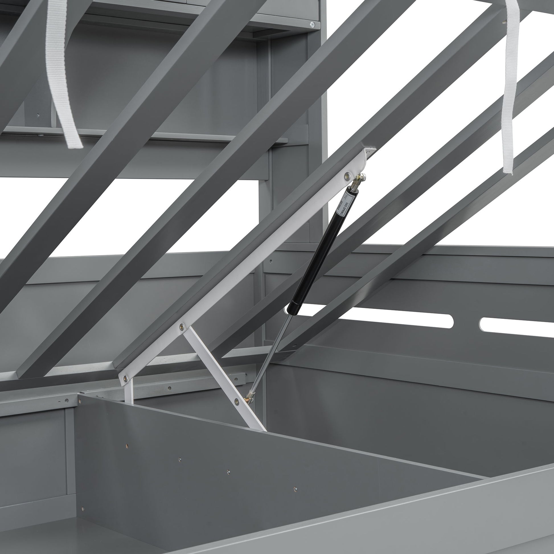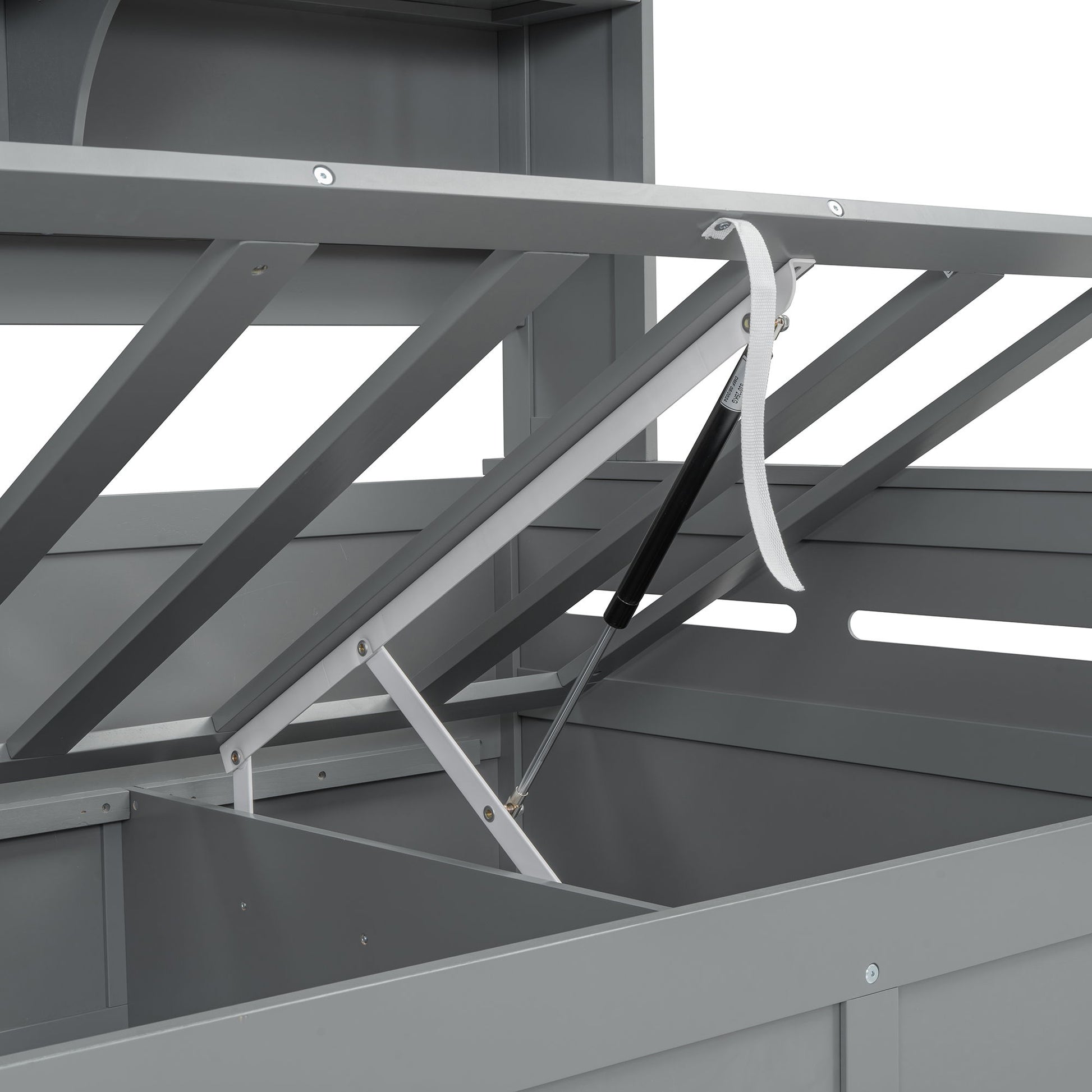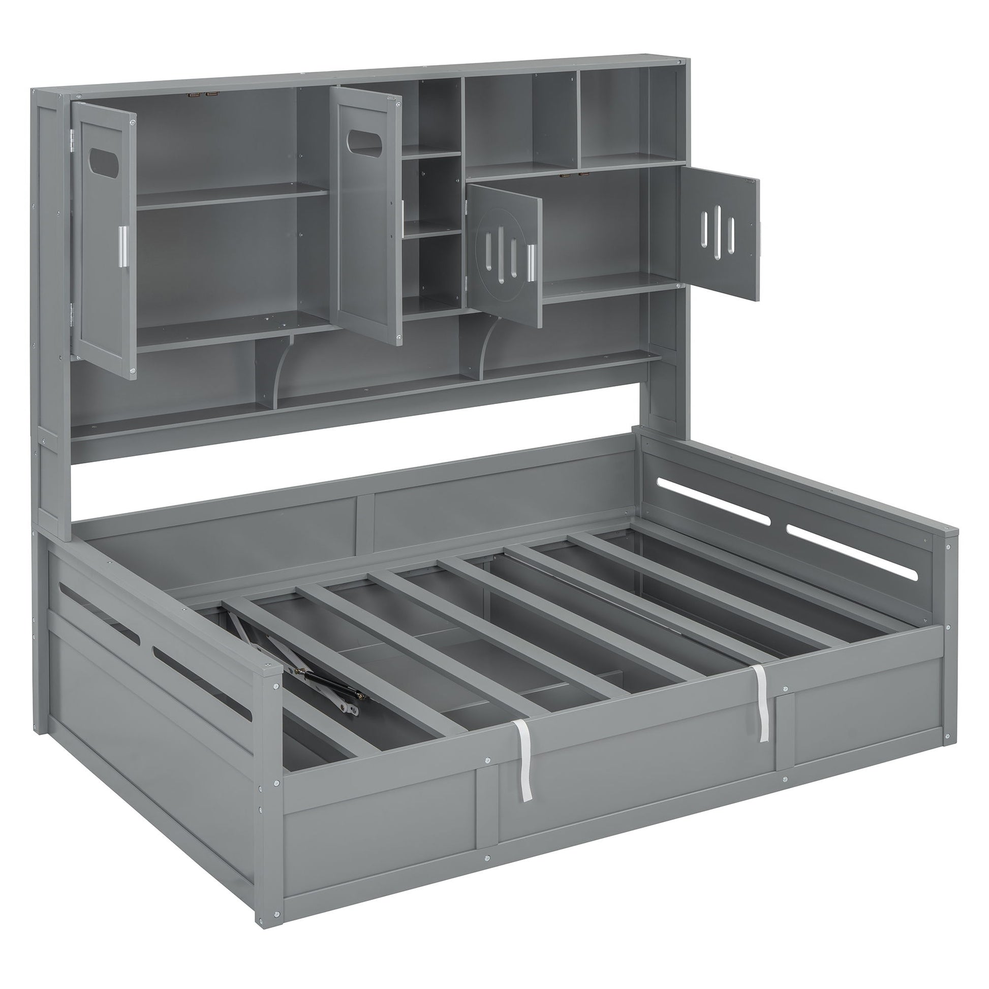 Full Size Wooden Daybed With Hydraulic Bed And All In One Cabinet And Shelf - Gray
