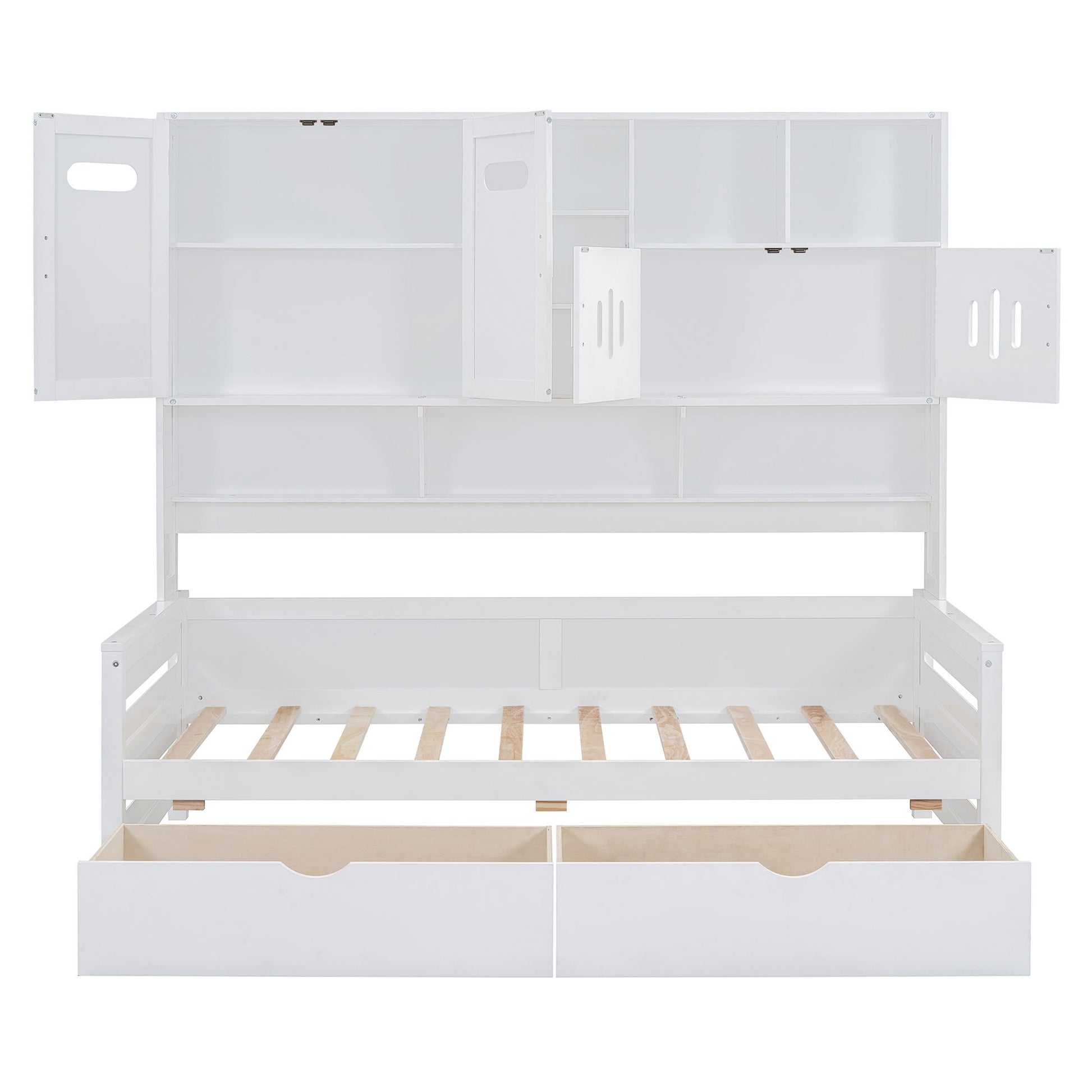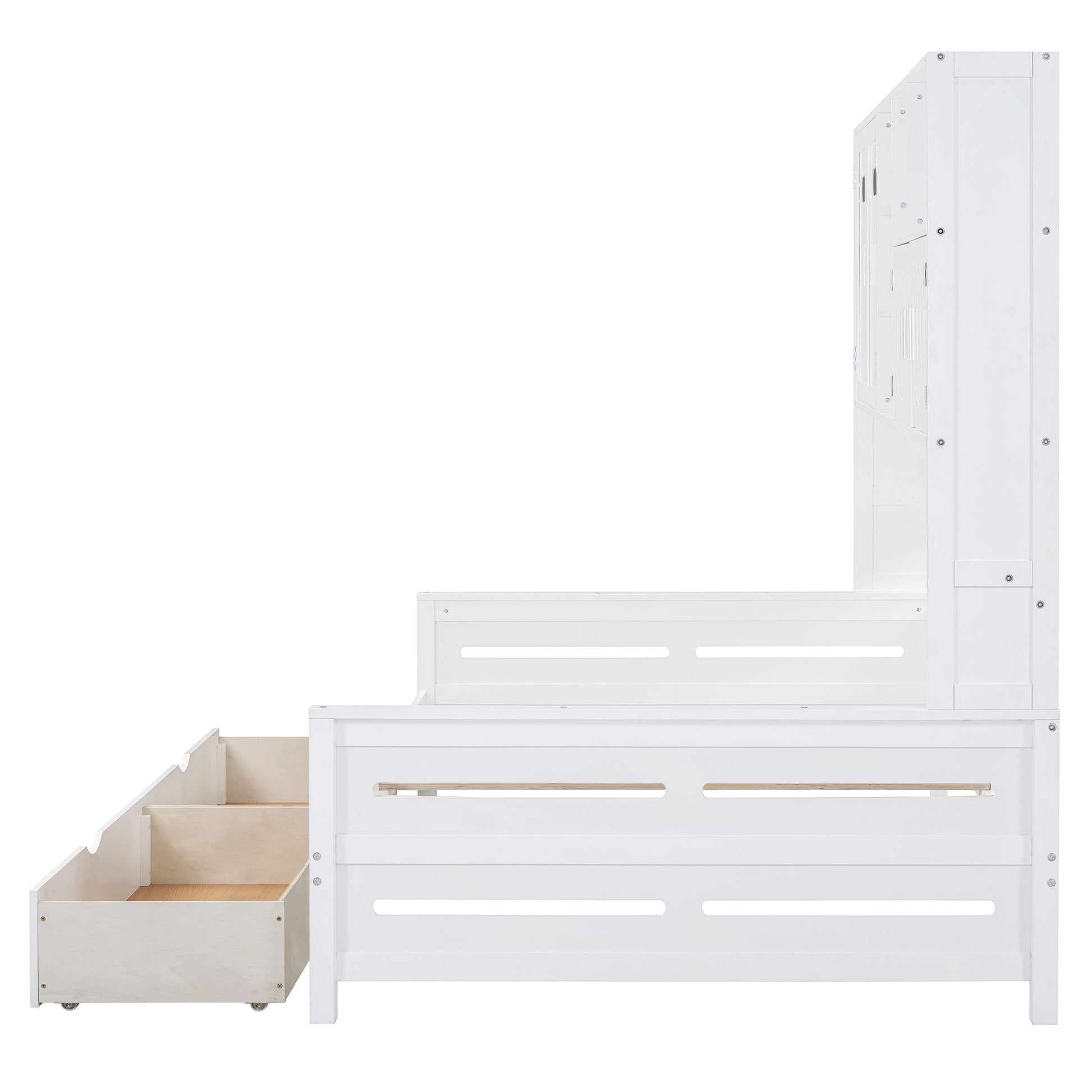 Full Size Daybed With 2 Drawers And All In One Cabinet And Shelf - White