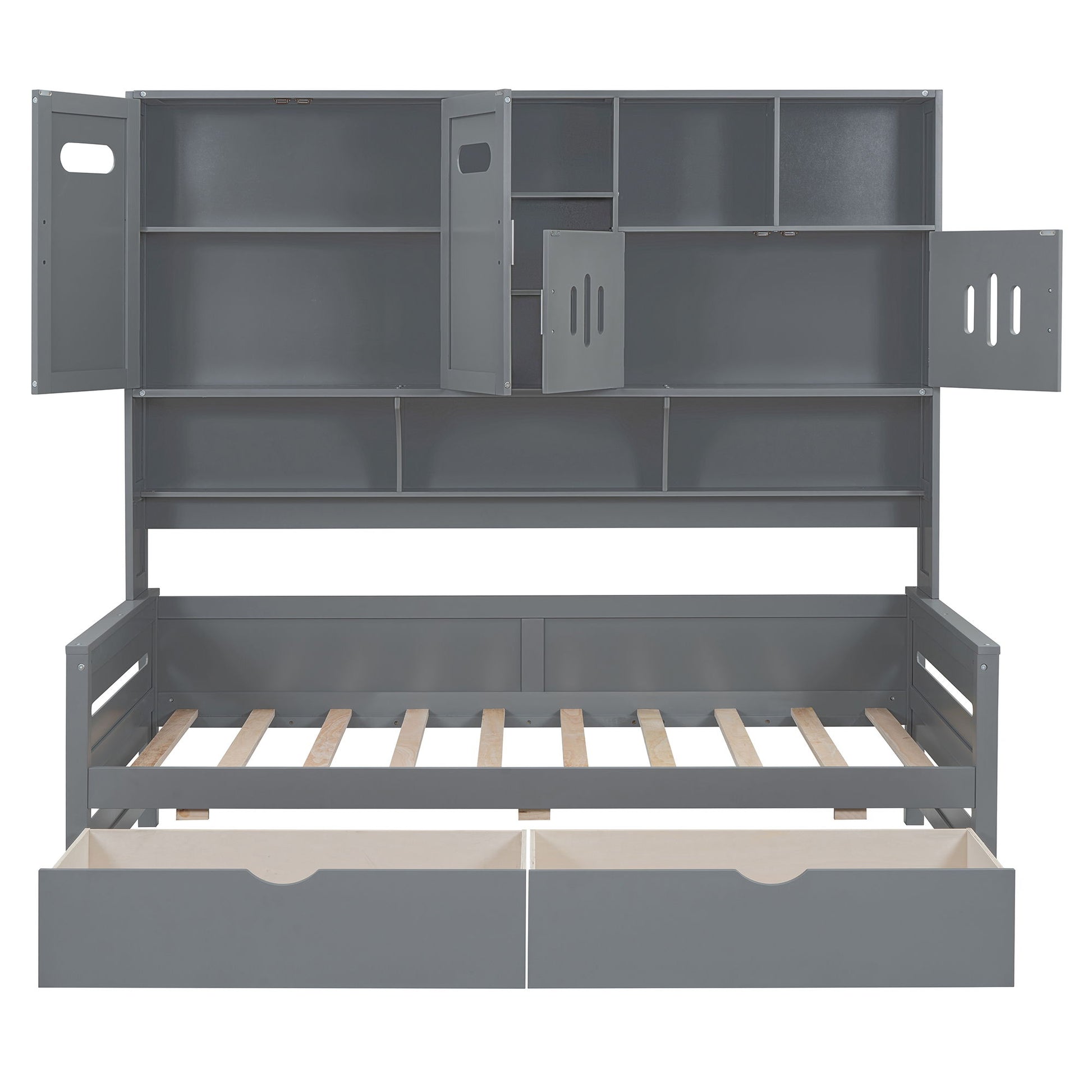 Full Size Daybed With 2 Drawers And All In One Cabinet And Shelf - Gray