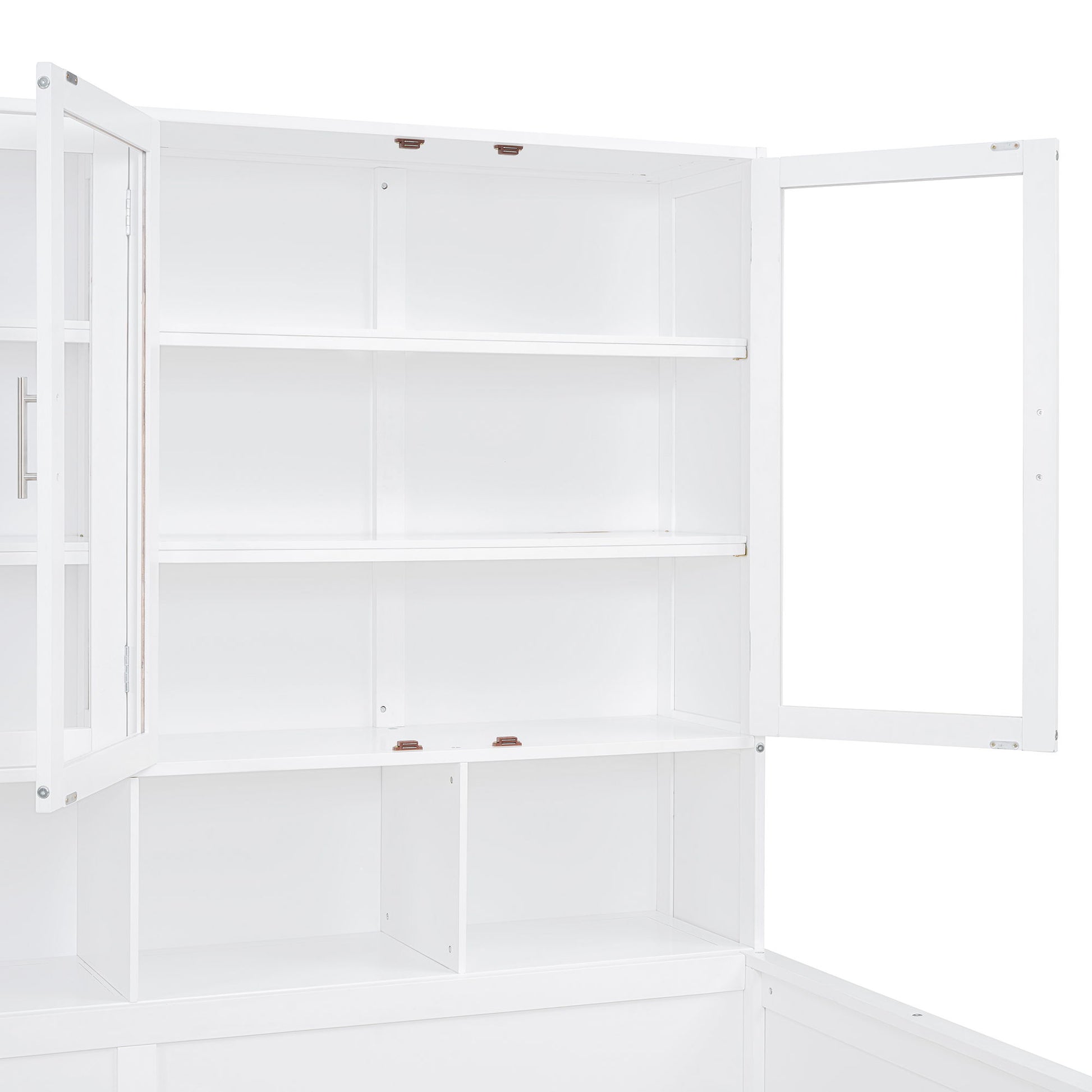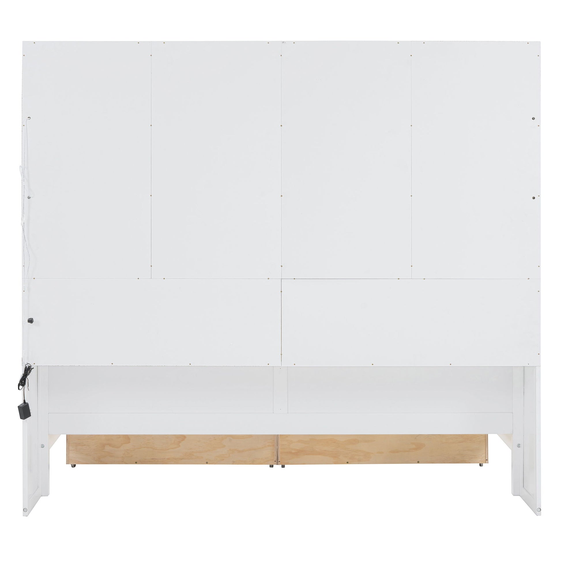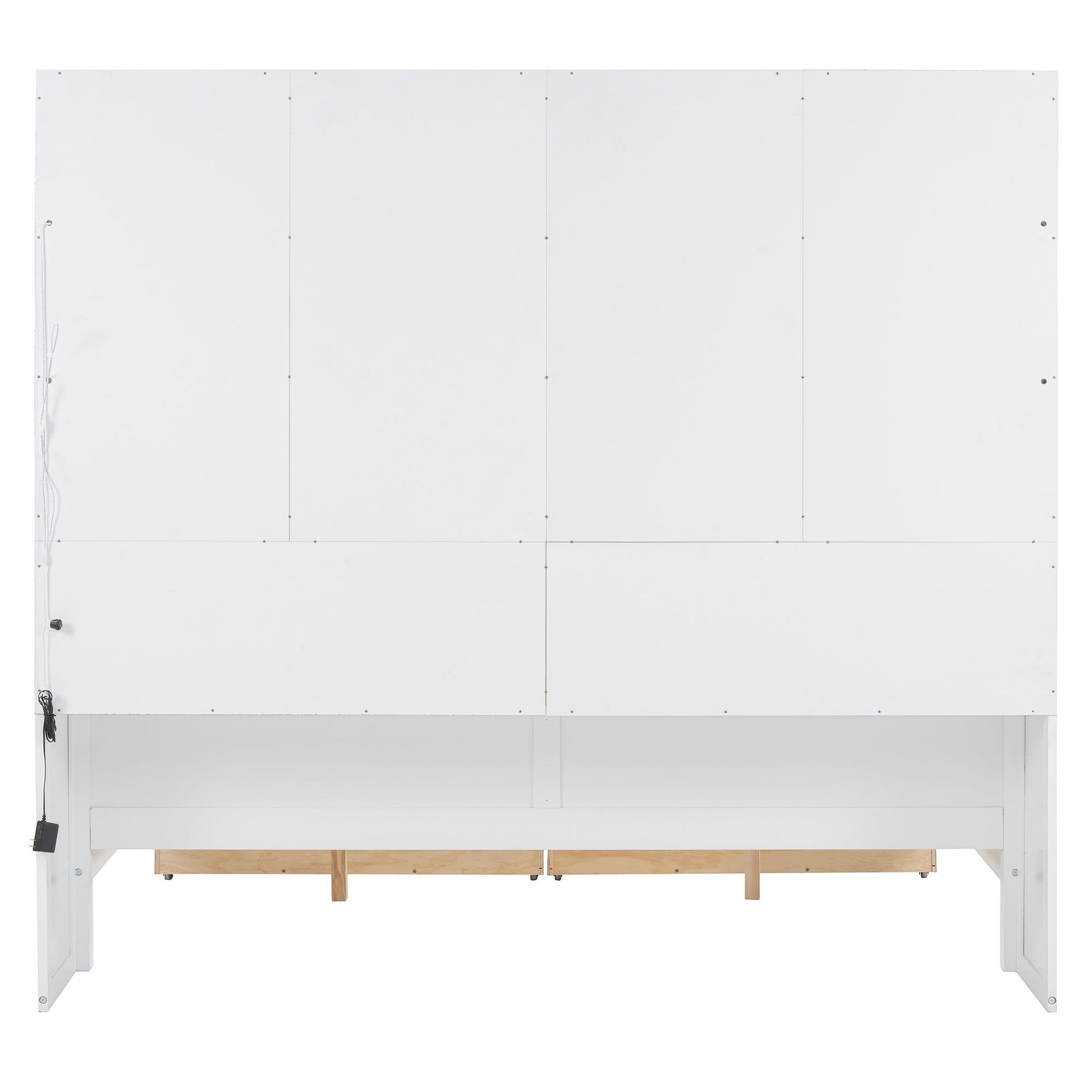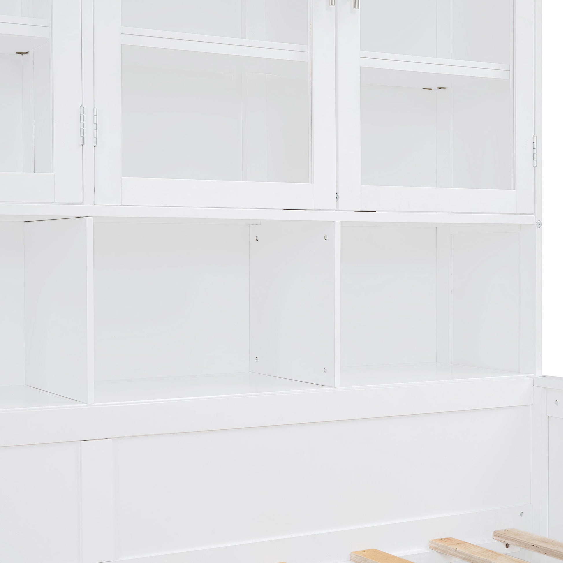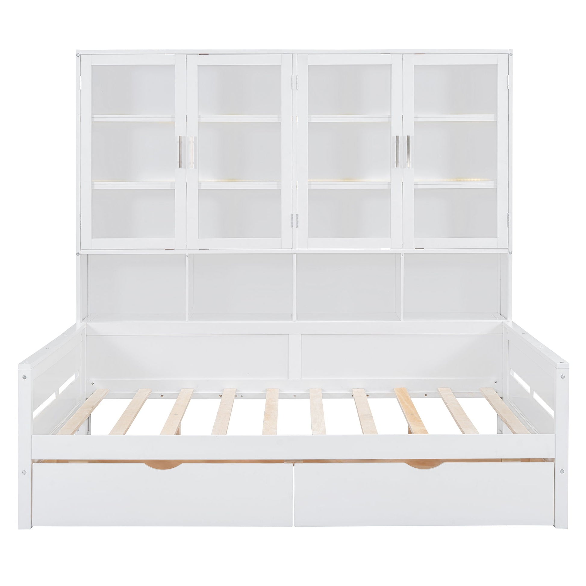 Full Size Daybed With Glass Door Storage Cabinets, Built In LED Lighting And Shelves - White