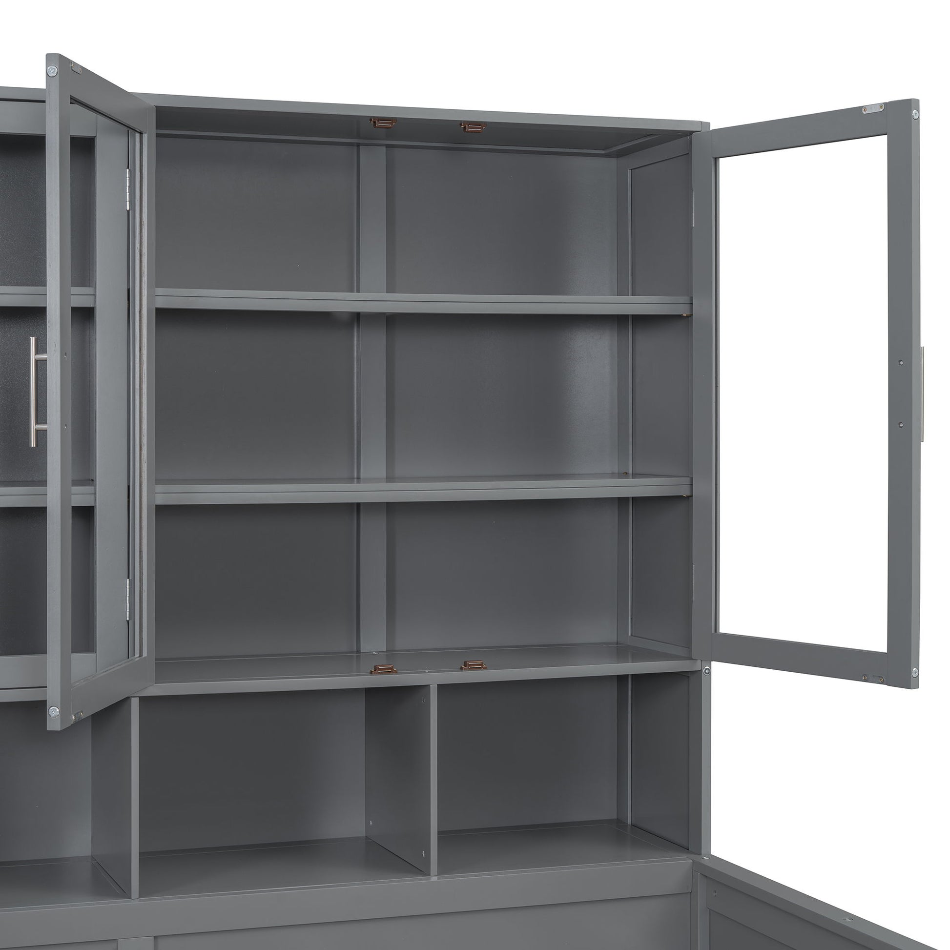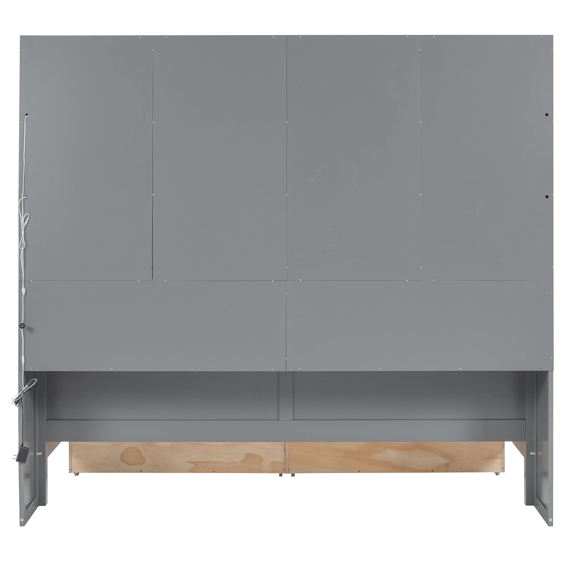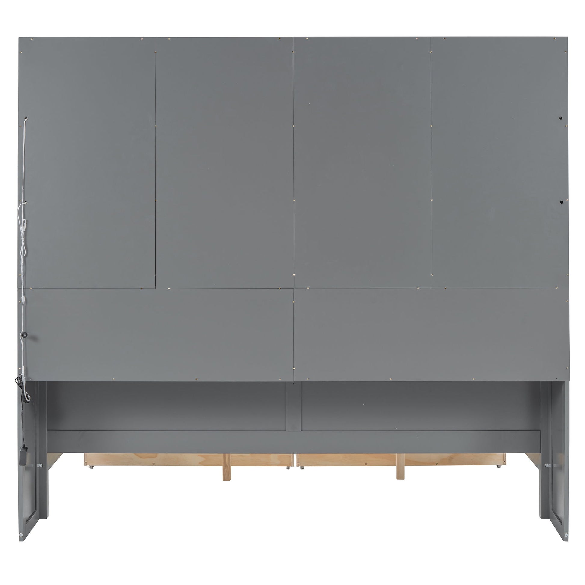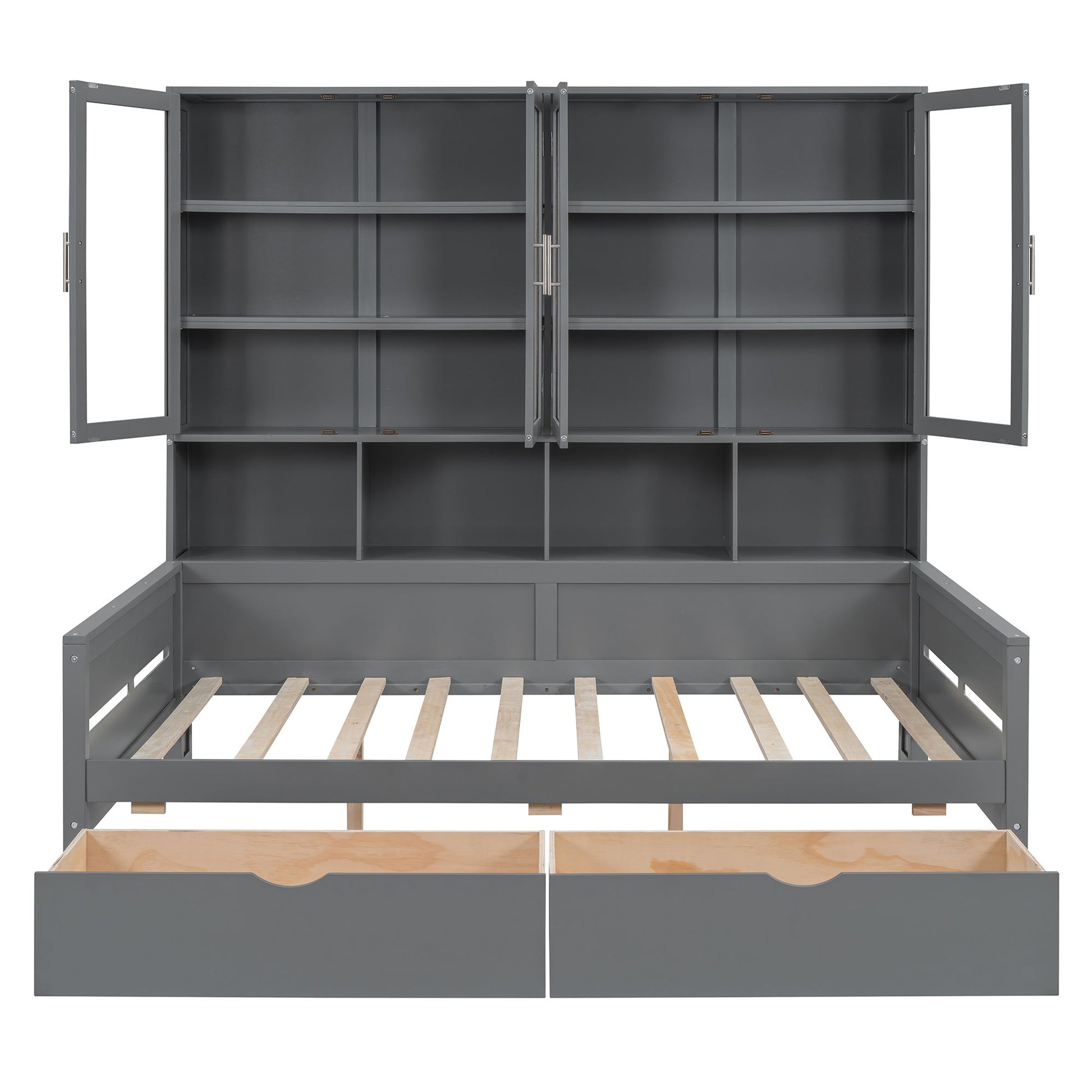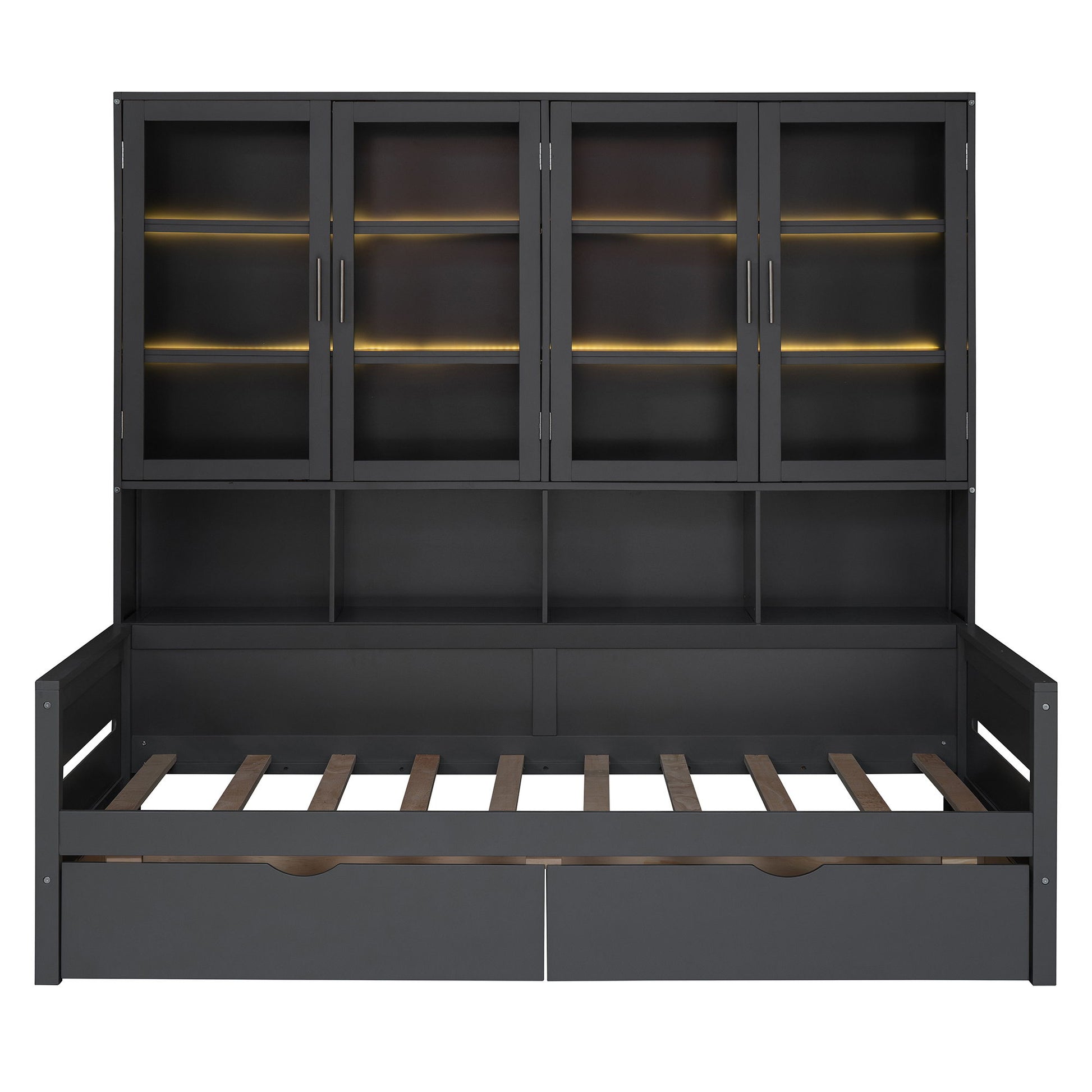Full Size Daybed With Glass Door Storage Cabinets, Built In LED Lighting And Shelves - Gray