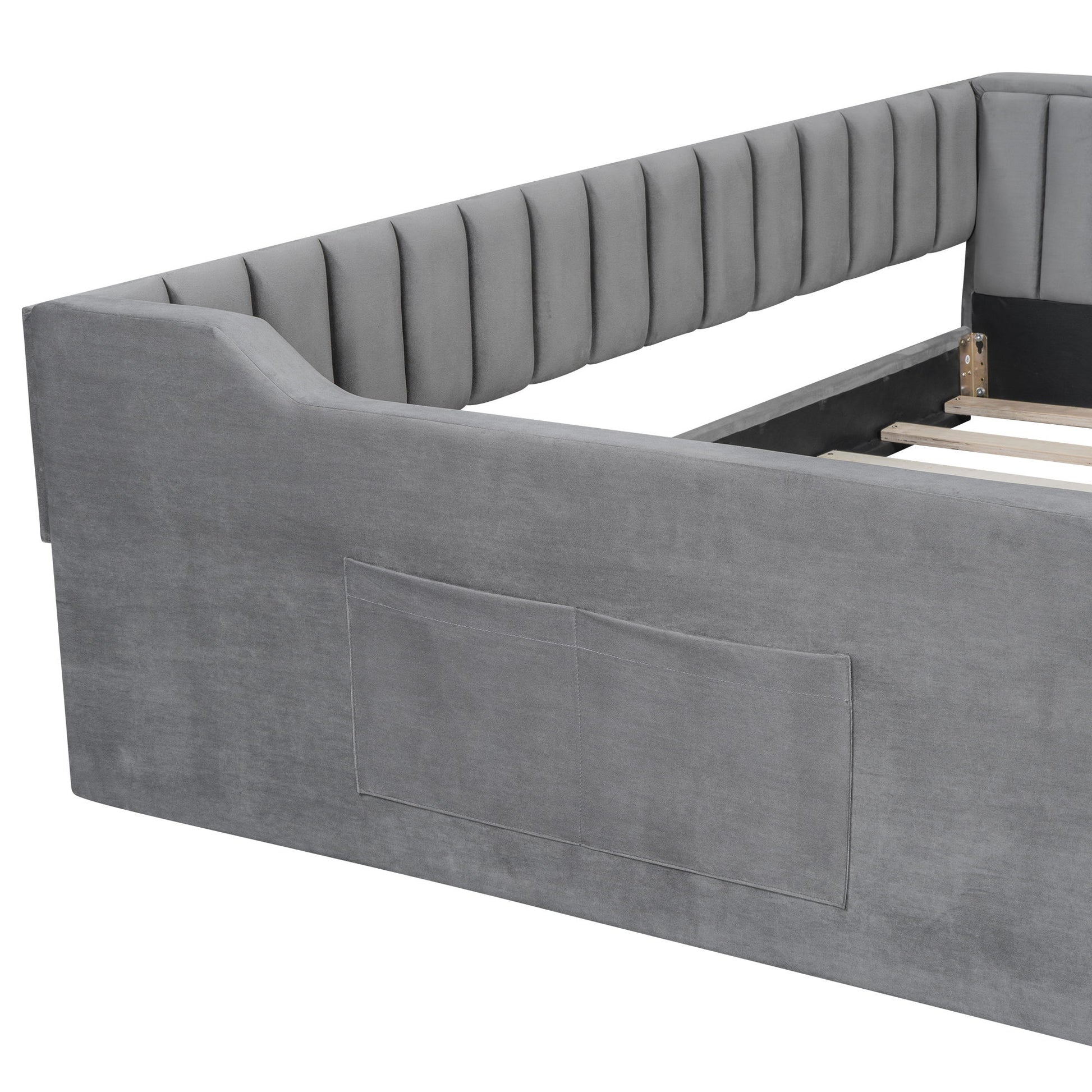 Full Long Size Upholstery Daybed And Side Storage Pocket - Gray